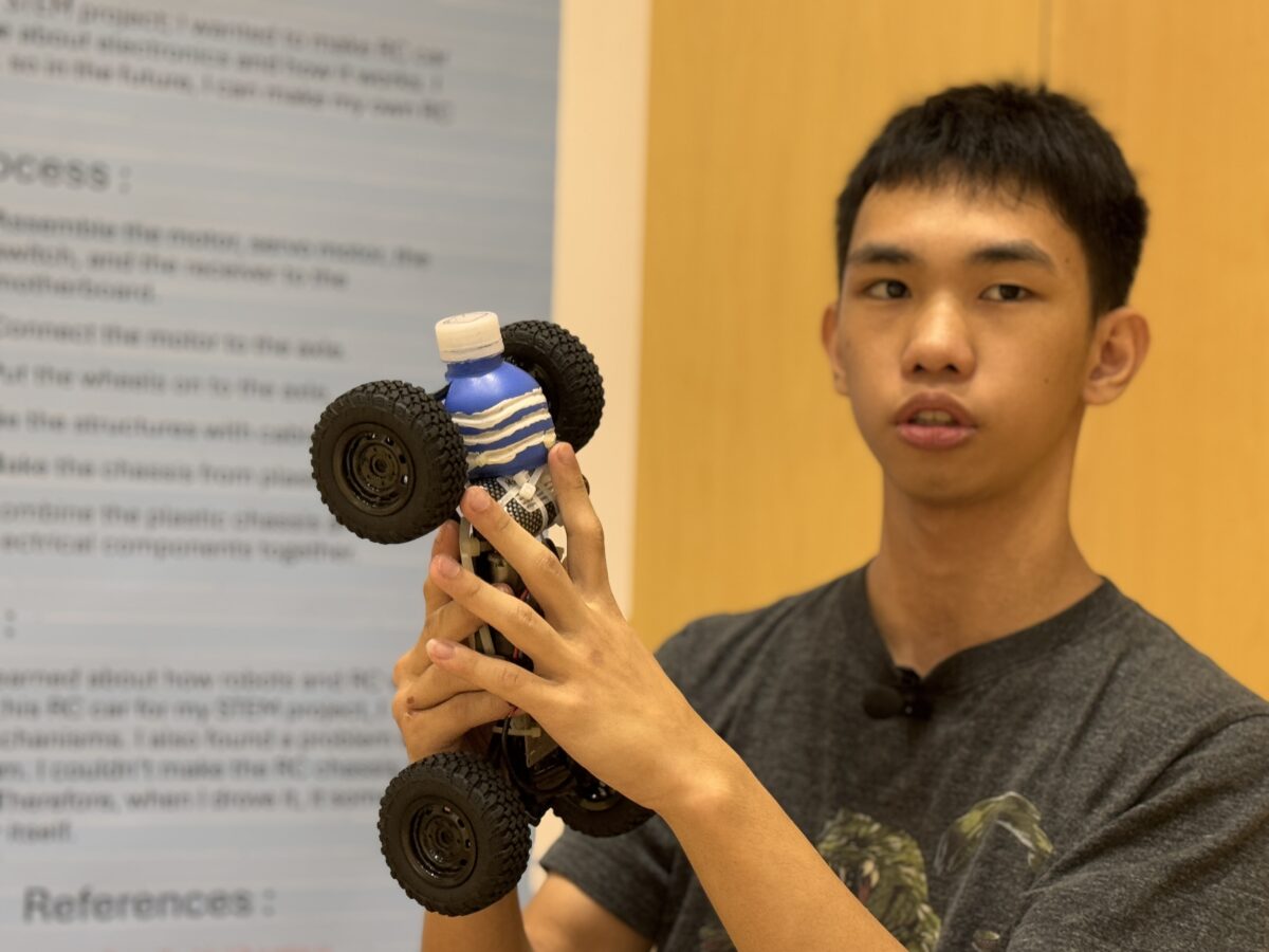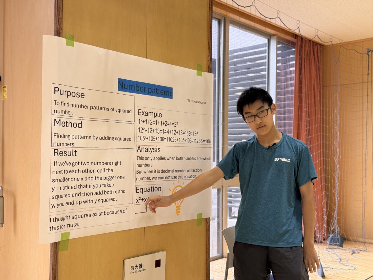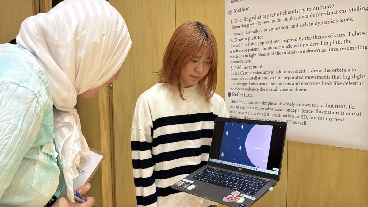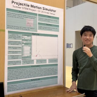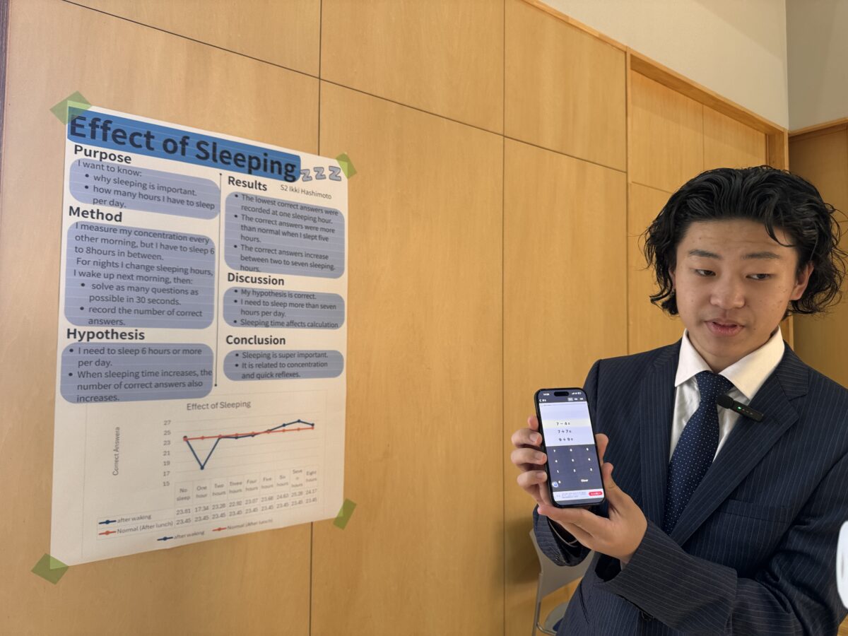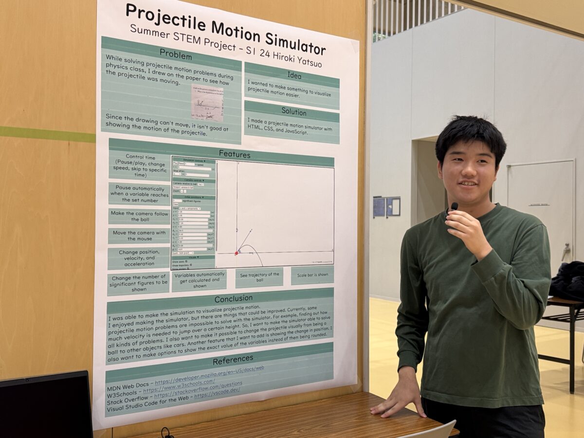 2025年9月25日(木)、10月1日(水)、白山麓キャンパスで1・2年生の「STEMフェア」が開催されました。学生たちが夏休み中に取り組んだSTEMに関連したプロジェクトを発表し、各教員たちによる質疑応答を経て審査が行われました。審査の結果、ベストSTEMプレゼンテーションアワードの1位、2位、SDG’s賞、各STEM科目の担当教員による特別賞の受賞式が行われました。結果は以下の通りです。