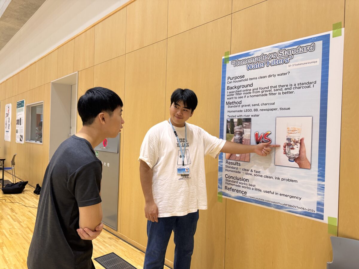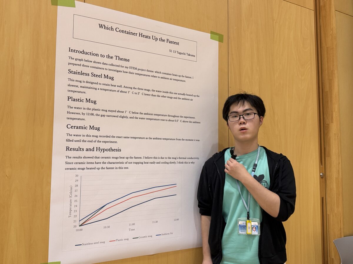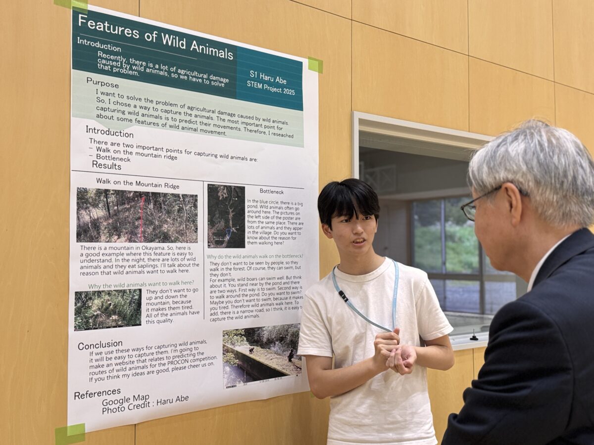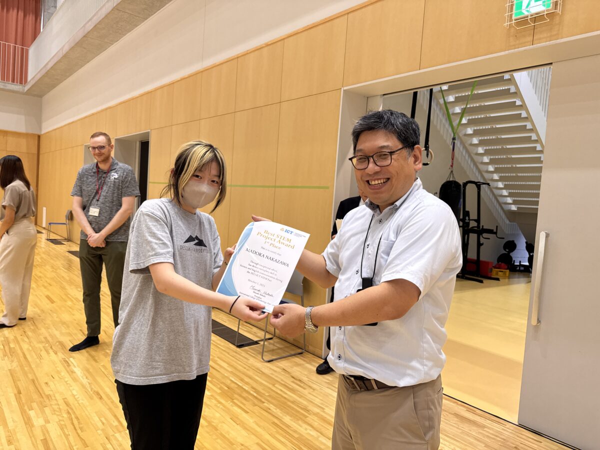 On Thursday, September 25th and Wednesday, October 1st, 2025, the 1st and 2nd year STEM Fairs were held at the Hakusanroku Campus. Students presented projects related to STEM that they worked on during the summer vacation, followed by a question and answer session with faculty members, after which evaluations took place. As a result of the evaluations, an award ceremony was held for the Best STEM Presentation for 1st and 2nd place, the SDG’s Award, and Special Awards from the instructors of each STEM subject. The results are as follows: