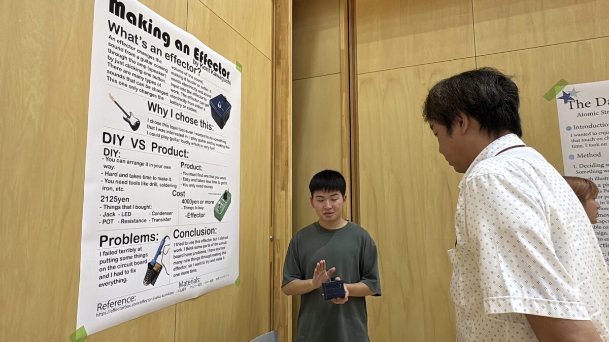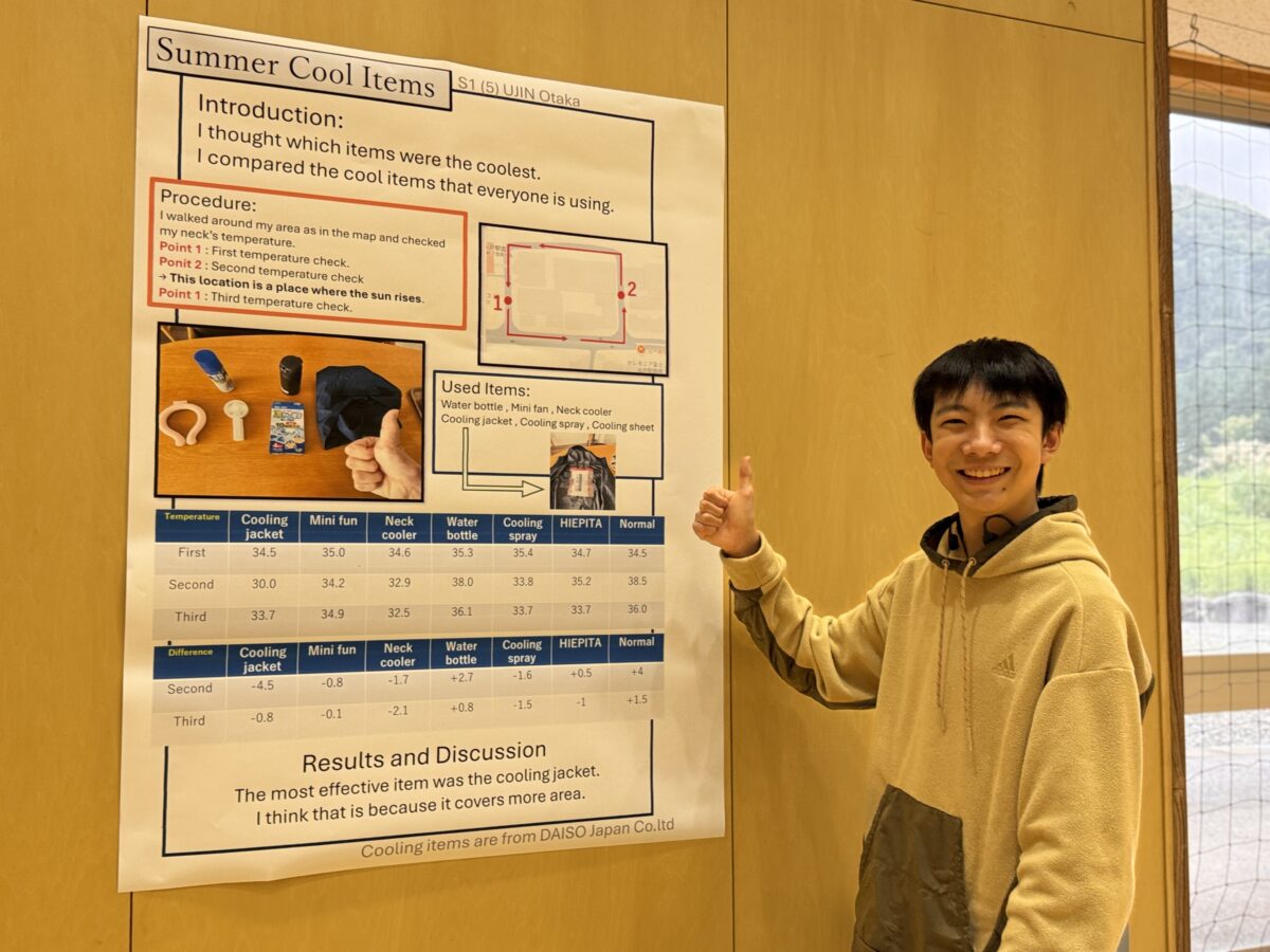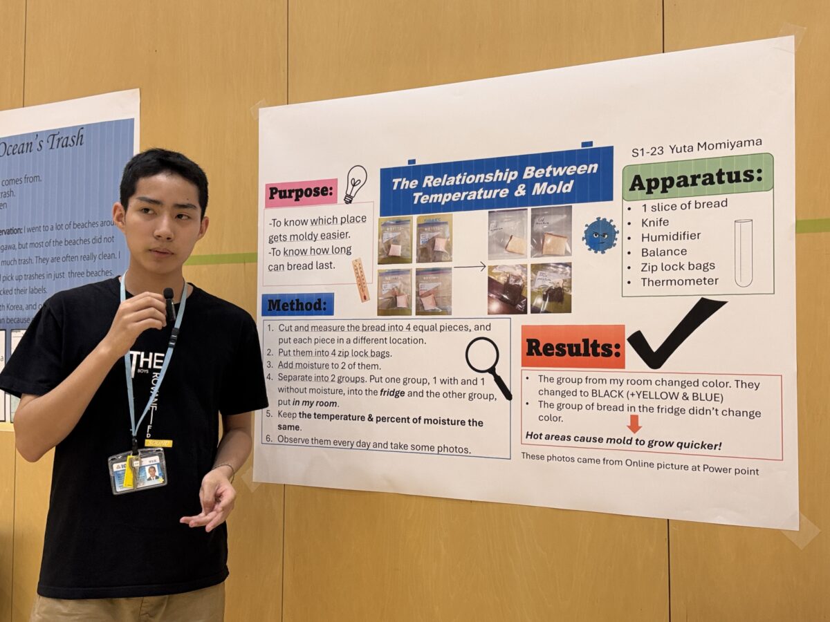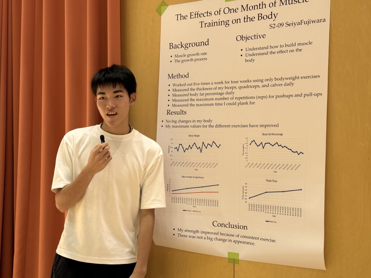 On Thursday, September 25th and Wednesday, October 1st, 2025, the 1st and 2nd year STEM Fairs were held at the Hakusanroku Campus. Students presented projects related to STEM that they worked on during the summer vacation, followed by a question and answer session with faculty members, after which evaluations took place. As a result of the evaluations, an award ceremony was held for the Best STEM Presentation for 1st and 2nd place, the SDG’s Award, and Special Awards from the instructors of each STEM subject. The results are as follows: