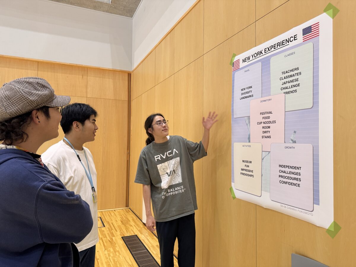 On Wednesday, October 1st, 2025, the Debriefing Session of the Overseas English Program was held at the Hakusanroku Campus. Four 2nd year students participated in the Overseas English Program this summer, spending 3 to 4 weeks in London, New York, and Seattle. The objective of this program is to improve students' English communication skills through living and interacting in a different culture. While experiencing the local customs and lifestyle, students aimed to learn practical English and broaden their international perspectives.