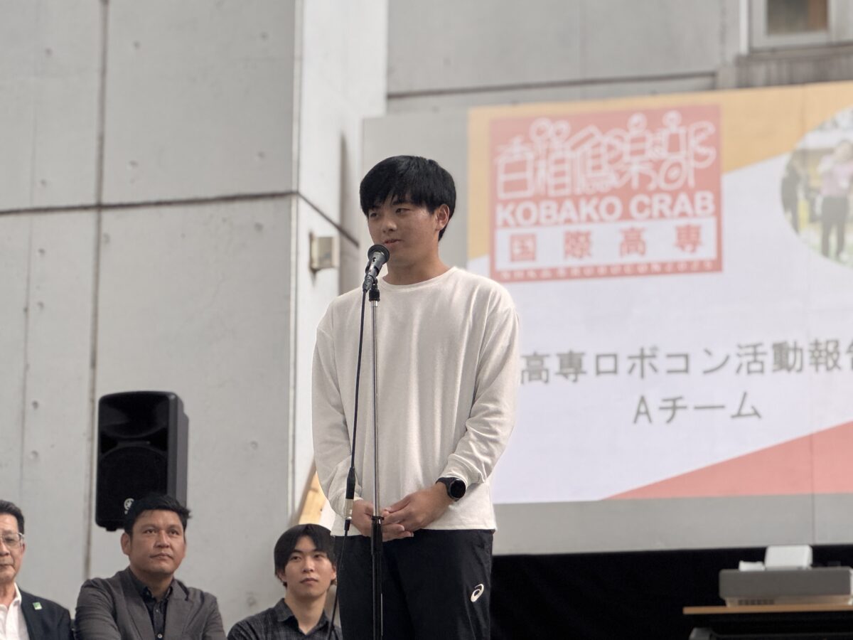 During the send-off ceremony for the National KOSEN ROBOCON Contest, encouraging words were delivered by the Alumni association representatives, the ICT PTA, the student council,and the ICT President. The leader of Team A, Haruki Ohta (4th year) expressed gratitude and shared his determination to do well at the national competition.