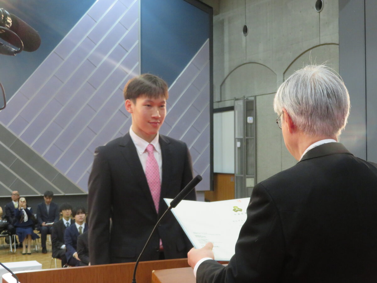 The Five-Year Academic Excellence Award: Mr. Kan Kinoshita五か年間優等賞 木下 観さん