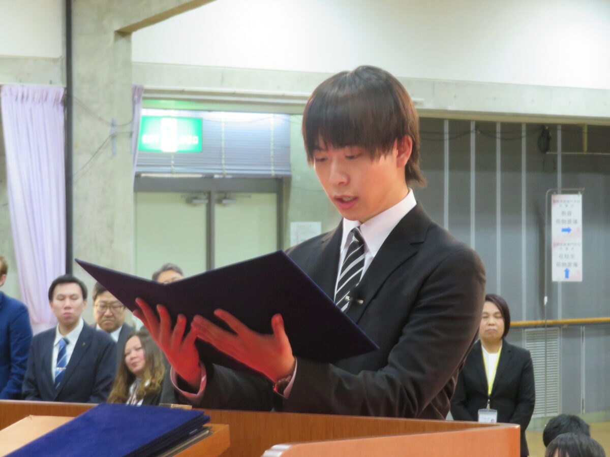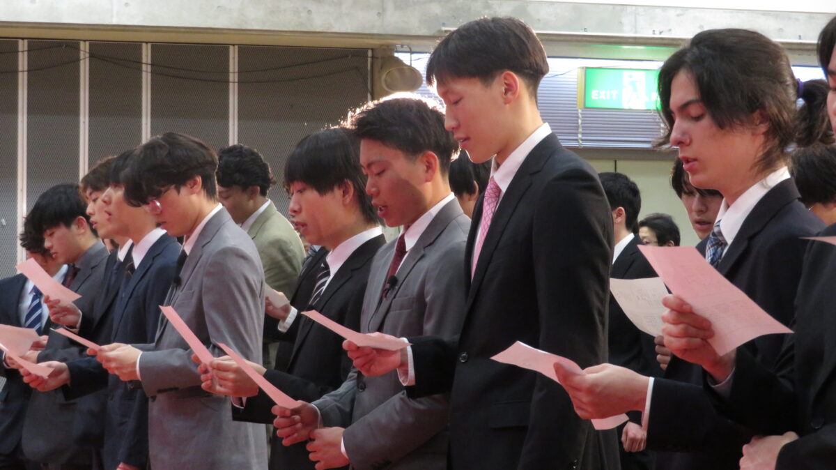 Responding to this message on behalf of the graduates, Mr. Kinoshita took the stage and stated powerfully: