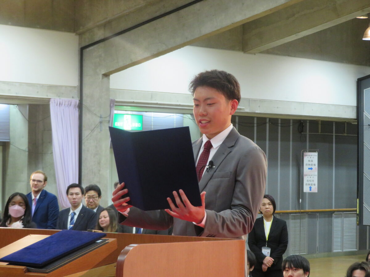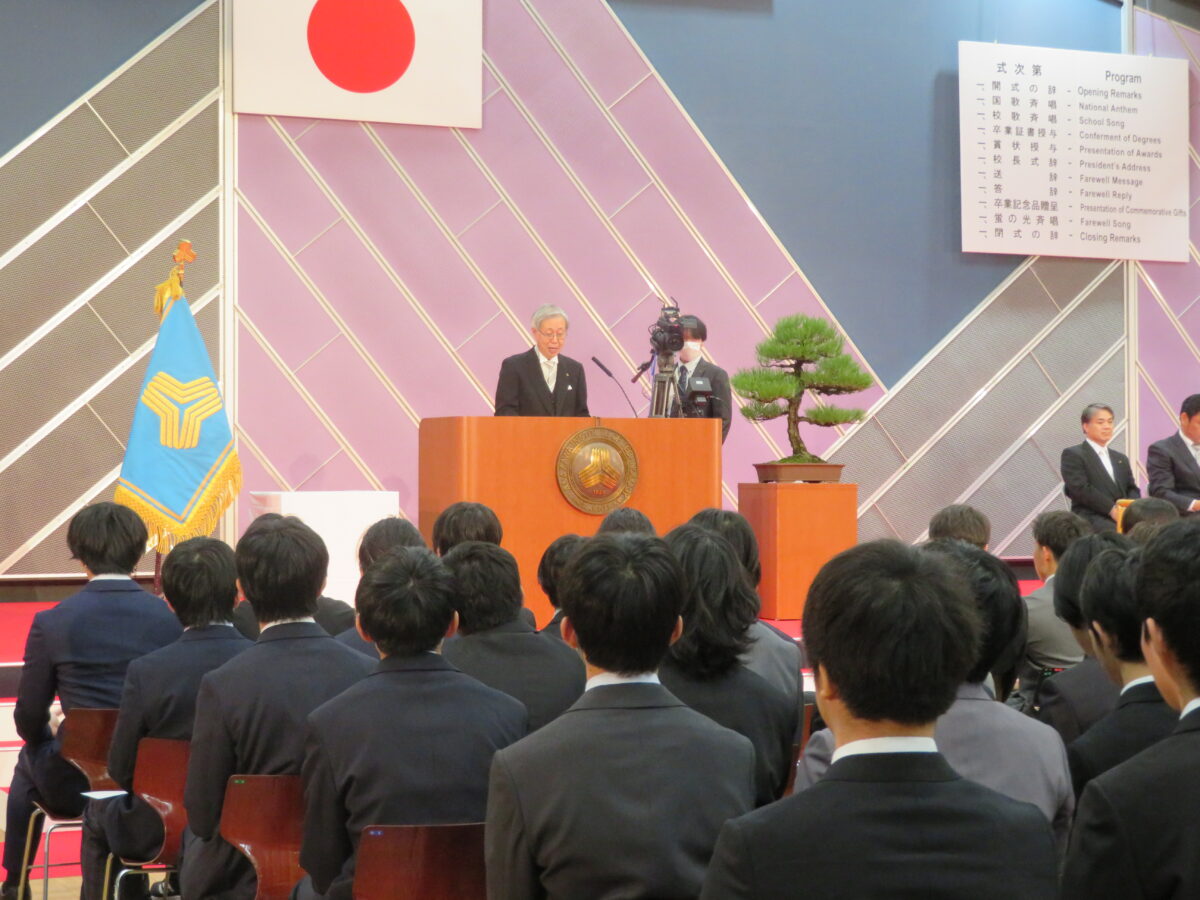 In the President’s Commencement Address, President Shikada spoke in English, reflecting on the achievements of the graduates throughout each year from their enrollment in 2021 to the present. He concluded with the message: