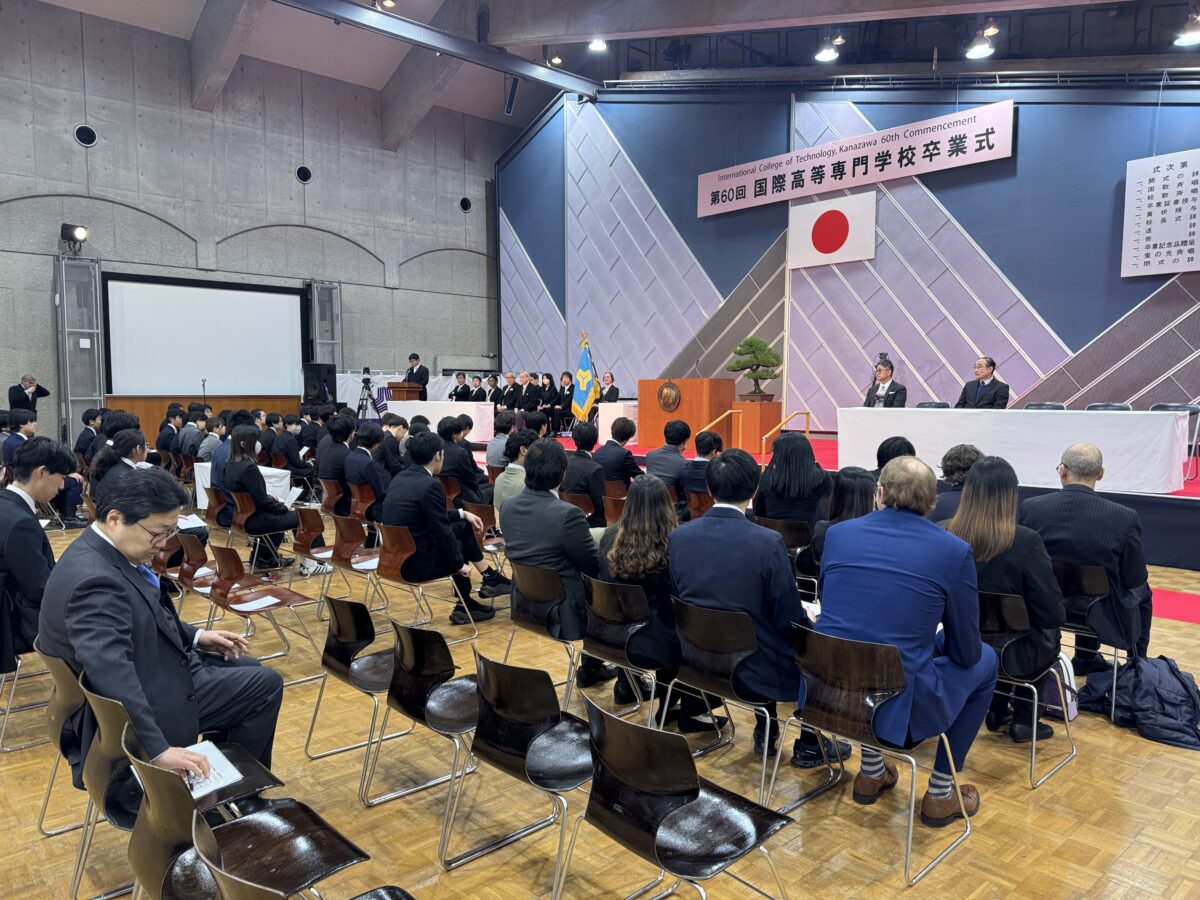 On Tuesday, March 3rd, 2026, the 60th Graduation Ceremony of the International College of Technology was held in the Multi-purpose Hall at the Kanazawa Campus.