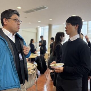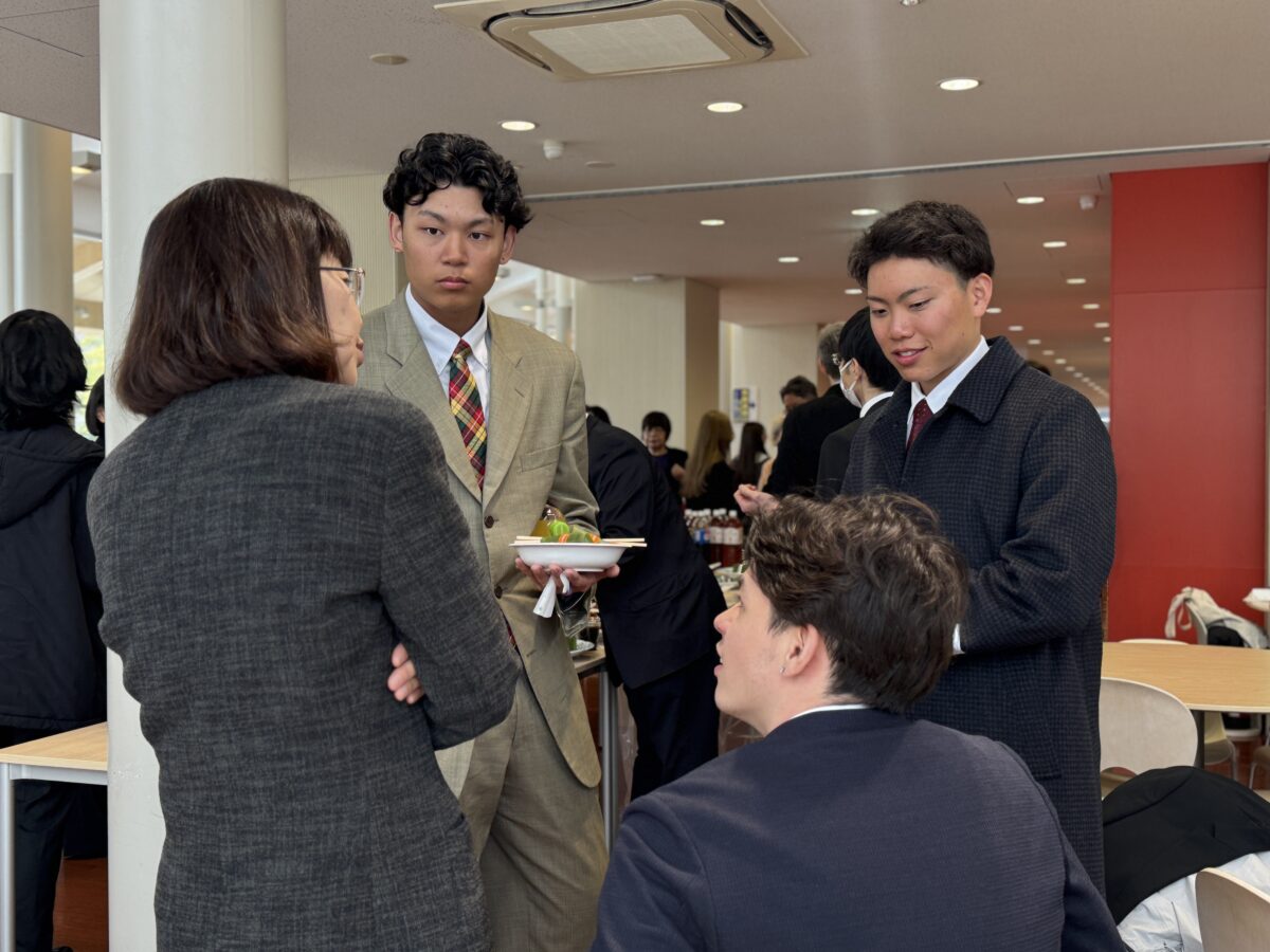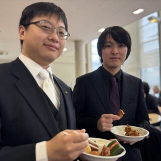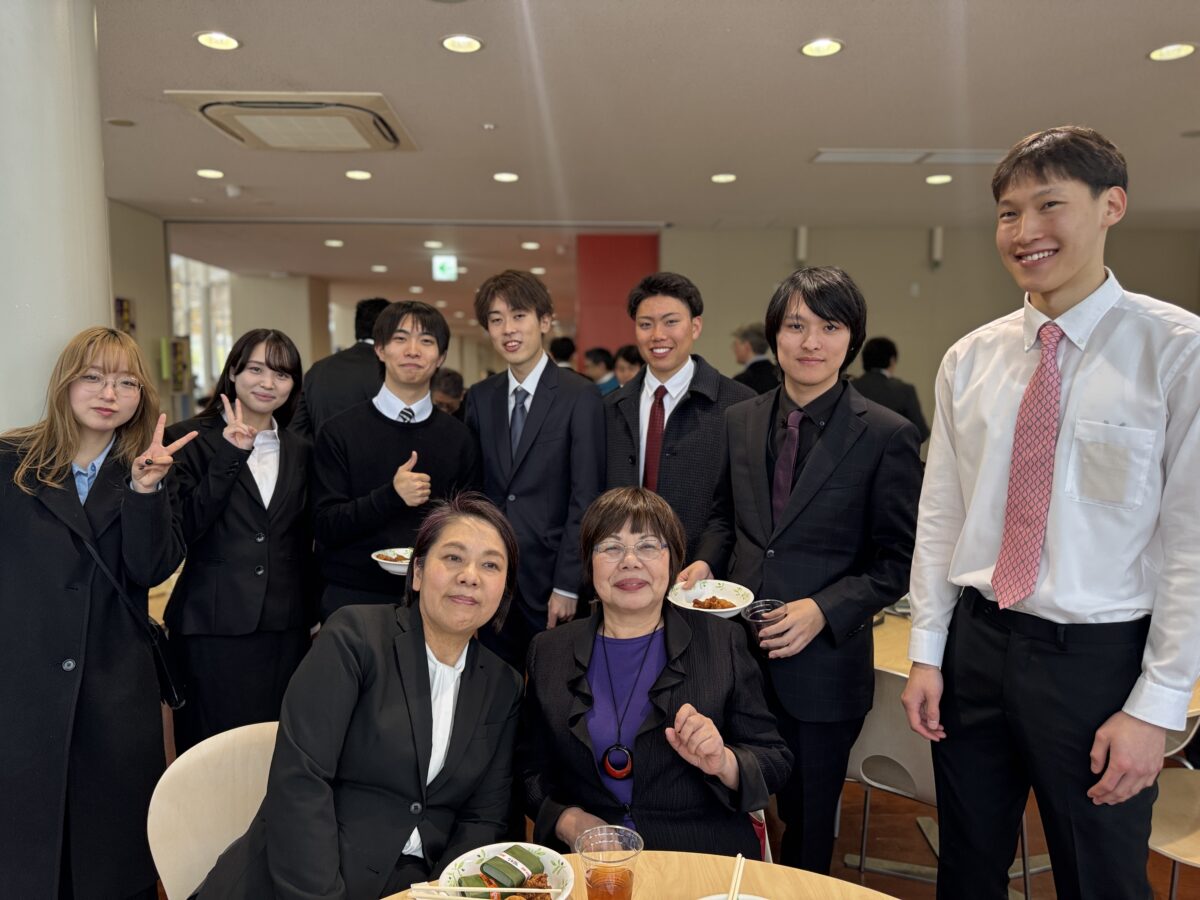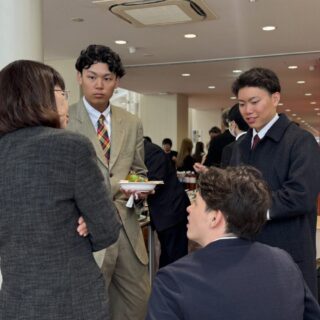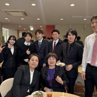 卒業式の後、21号館1階学食で卒業記念パーティーが行われました。卒業生、在校生、家族、教職員が思い出を語り合い写真撮影をする和やかな昼下がりの一時でした。