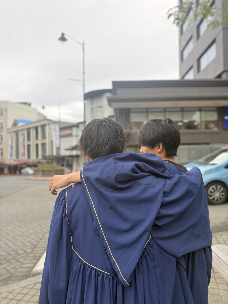 続いて、3月13日にはオタゴ大学を含む合同卒業式に参加し、ガウンとハットを着用して式典に臨む貴重な機会を得ました。アカデミックドレス姿で臨んだ式は、華やかで明るい雰囲気に包まれた特別な場となり、1年間の努力が形として認められたことを実感した学生も多かったようです。
