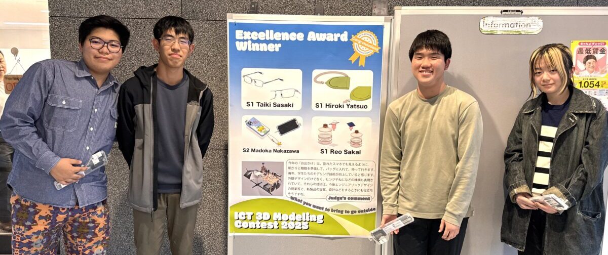 デザイン&ファブリケーション部顧問の林 道大です。本年度も夏季休暇中の課題として、3DCADモデリングに学生たちが取り組みました。今年のテーマは「お出かけに持って行くもの」で、1・2年生の学生たちから30点以上の作品が提出されました。提出された作品はさまざまなジャンルのものが網羅されており、全部を持ってお出かけすれば、楽しく、便利な遠足となりそうです。提出された全てを審査員たちで審査を行い、優秀賞4作品を選出しました。