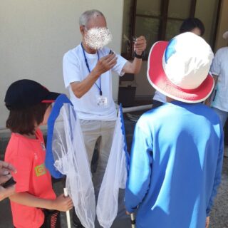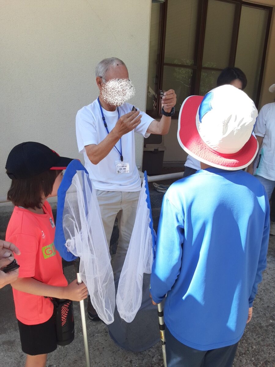 まず、アサギマダラファンクラブ白山の中村 明男さんのお話しを聞きました。中村さんは、蝶のライフサイクルや移動の習性について説明してくれました。また、例として自分で捕まえてマーキングしたアサギマダラを見せてくれた後、マーキングの仕方を説明・実演してくれました。
