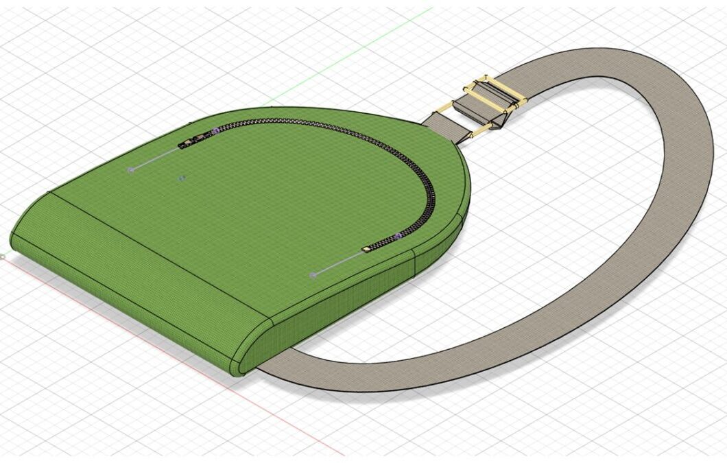 最後は、1年生 八尾 拓樹さんの「わたしのバッグ」です。こちらも曲面が多い難しい形状をバランス良くモデリングしてあります。ファスナーやベルト金具などの細かい部分まで、しっかりと作成してあります。ベルトを金具に通したり、バッグに固定したりする箇所のモデリングも複雑な操作が必要だったと思います。授業内で教えてもらっていない、機能や操作が必要な場面も多くあったでしょう。それらを自分で調べて、学び、成果が出た経験は、今後の他の課題でも役に立つことと思います。ベルトの曲げ方を3次元的に(奥行き方向に曲げる)すれば、もっとリアルに見えますので、ぜひ挑戦してみて欲しいと思います。