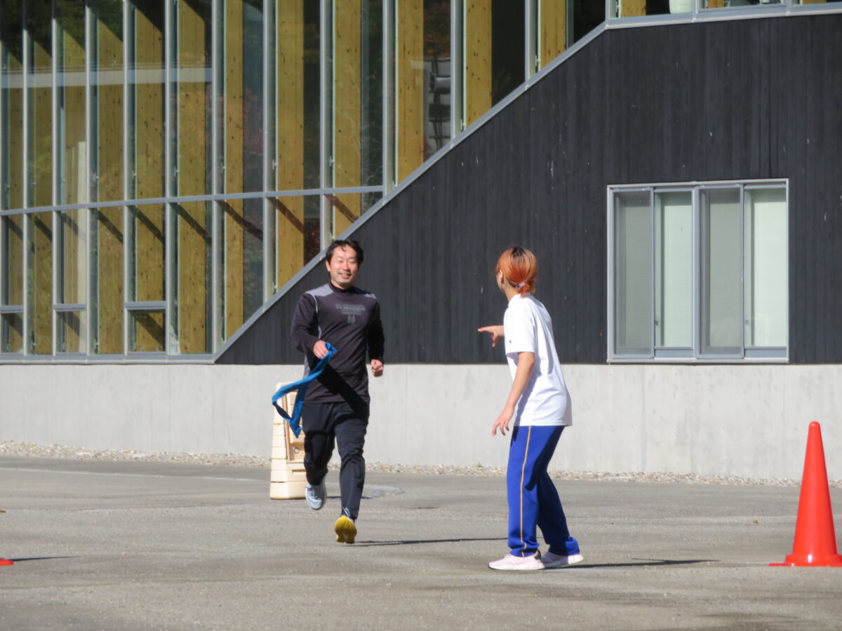 目標は最速でゴールすることではなく、事前に予想したタイムに最も近いタイムで完走することでした。このルールは少し複雑に感じるかもしれません。通常の「最速チームが勝ち」という形式よりも確かに複雑です。しかし、この方式を選んだ理由はいくつかあります。急激な運動による怪我のリスクを減らすこと、速くない学生へのプレッシャーを軽減すること、そして教員が「チームを遅らせてしまう」という負担感なく参加できるようにするためです。