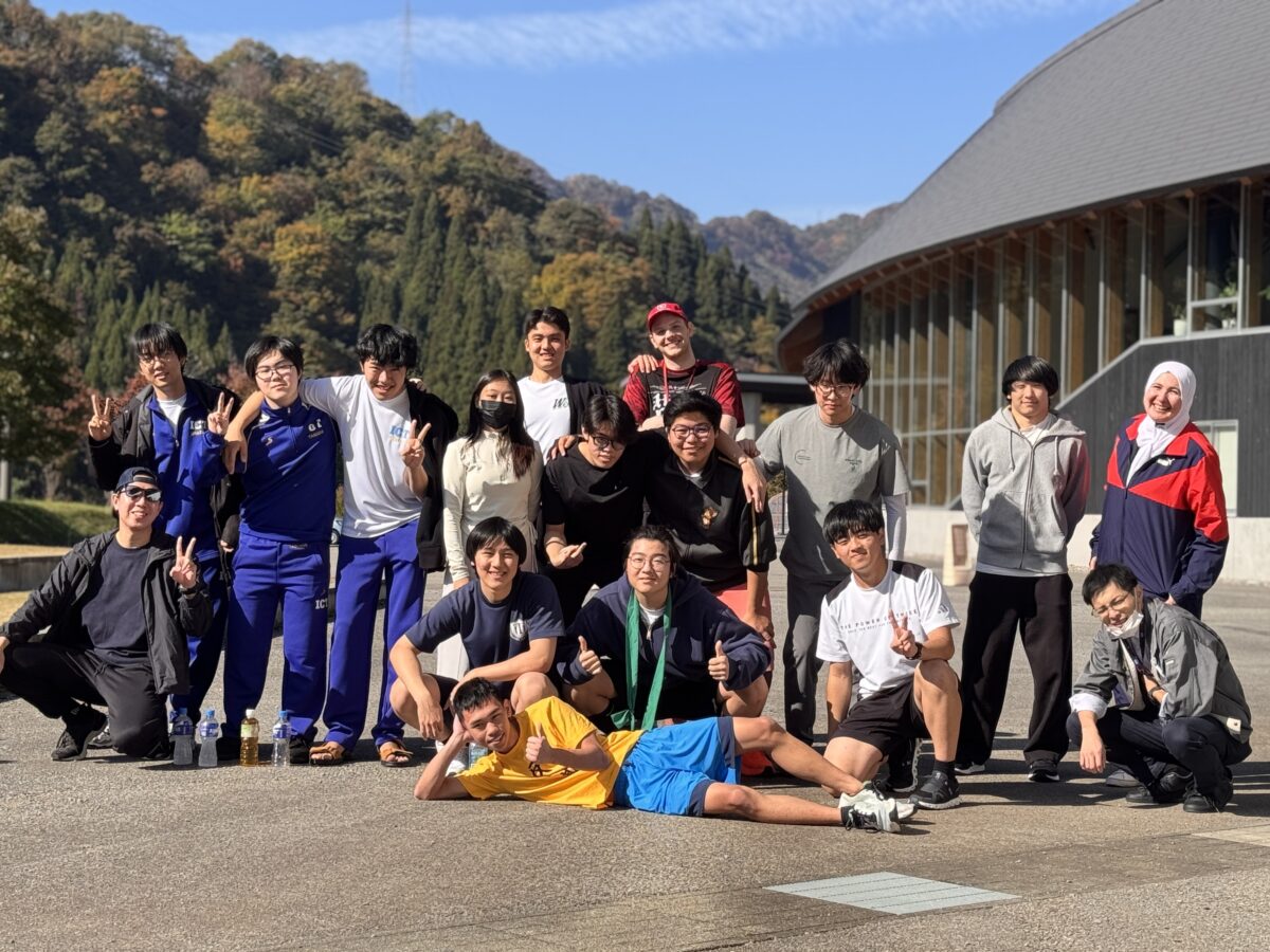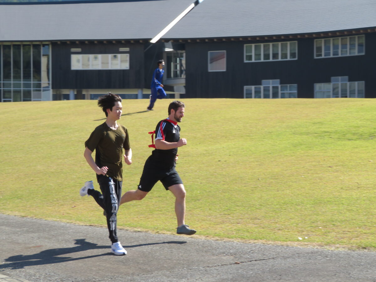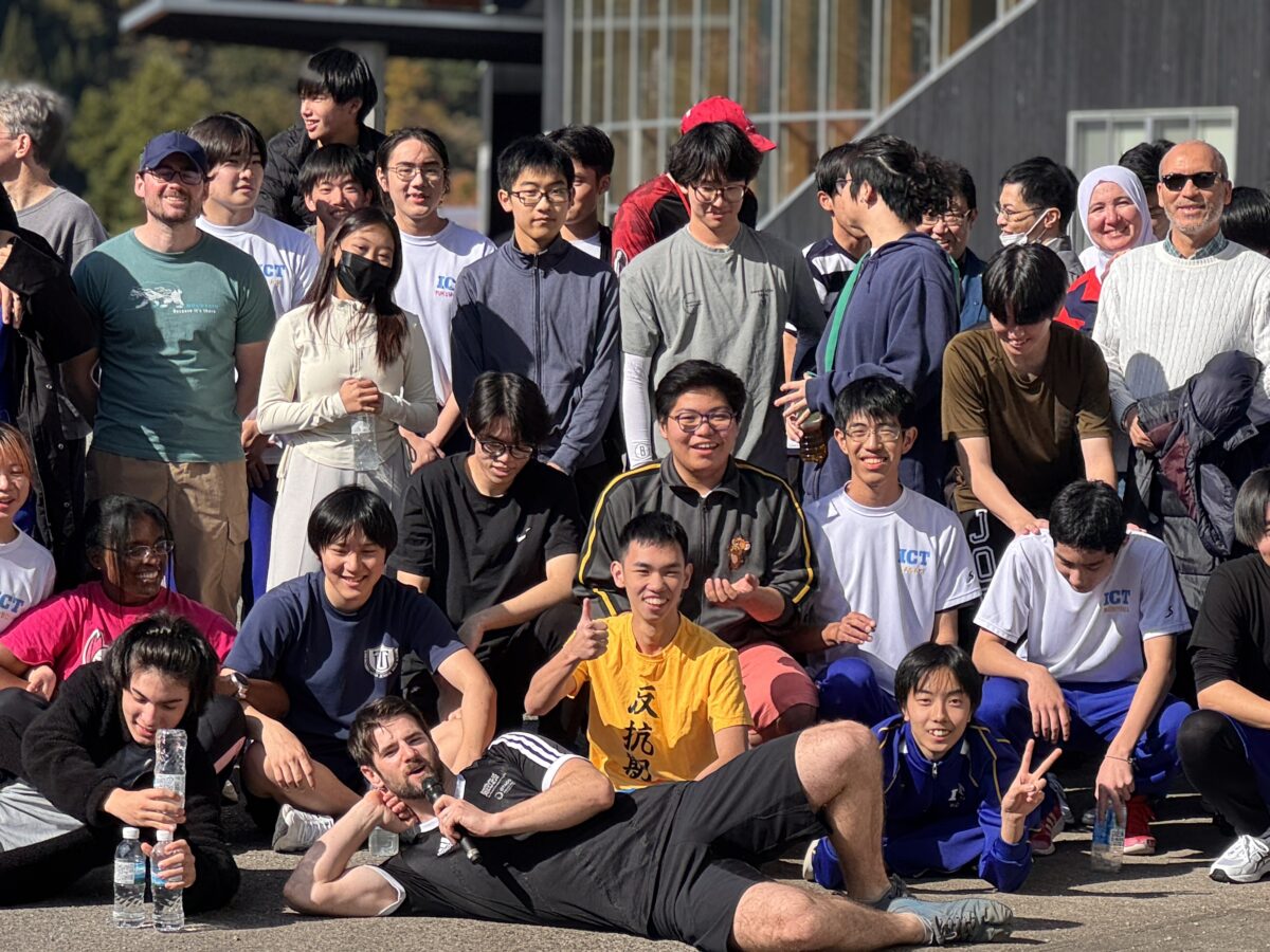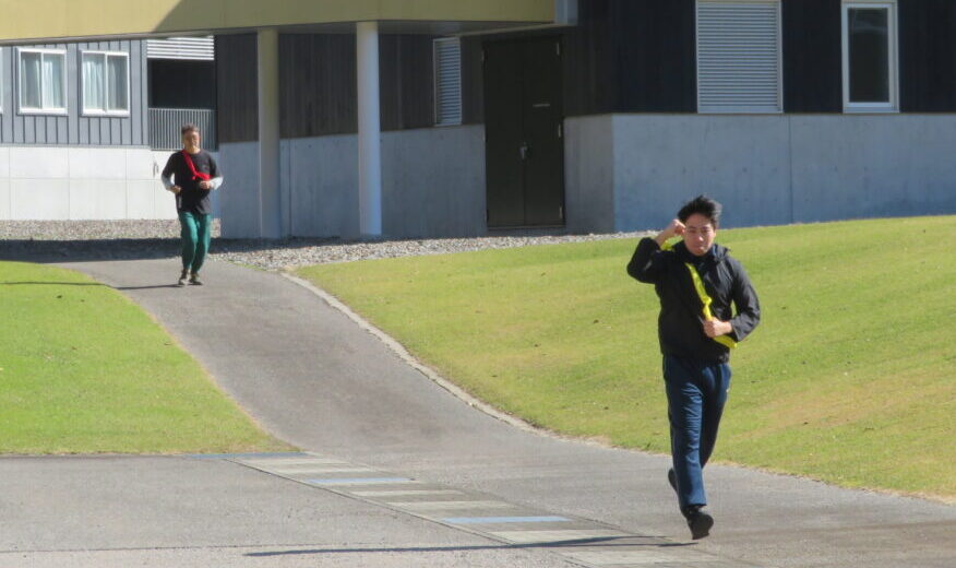 白山麓キャンパスで保健・体育科目を担当しているフィリップ・ケザウです。2025年11月8日(土)、白山麓キャンパスでは「第2回チーム対抗駅伝大会」が行われました。レースの目的は、15名で構成された各チームがキャンパス周回コース(1周約670m)を合計25周走り切ることでした。チームは学年を超えて編成され、教員も参加しました。