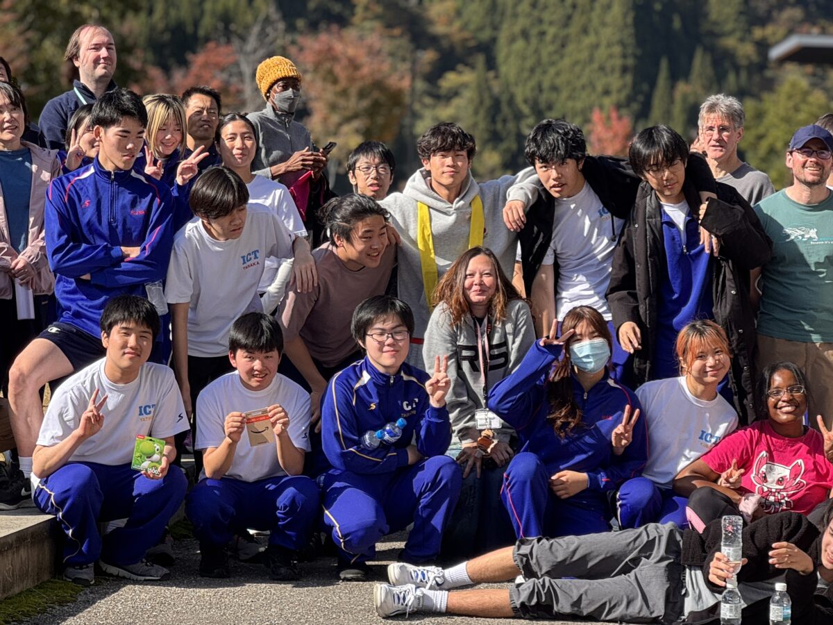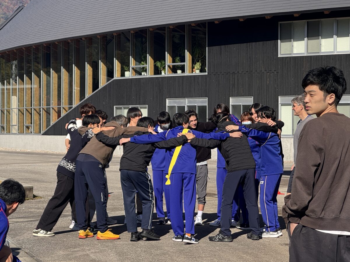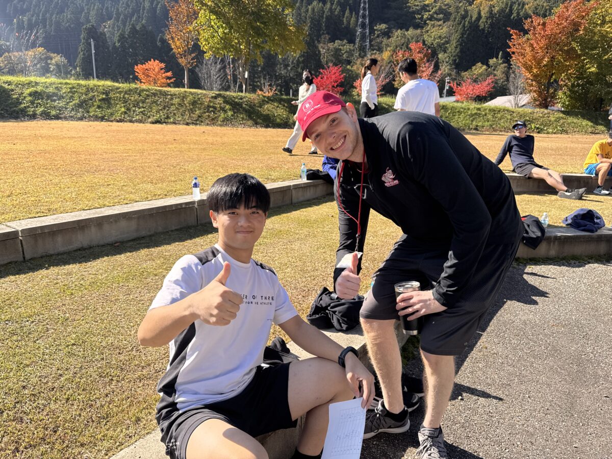 白山麓キャンパスで保健・体育科目を担当しているフィリップ・ケザウです。2025年11月8日(土)、白山麓キャンパスでは「第2回チーム対抗駅伝大会」が行われました。レースの目的は、15名で構成された各チームがキャンパス周回コース(1周約670m)を合計25周走り切ることでした。チームは学年を超えて編成され、教員も参加しました。