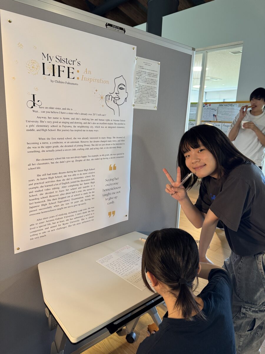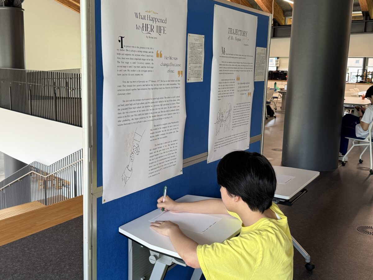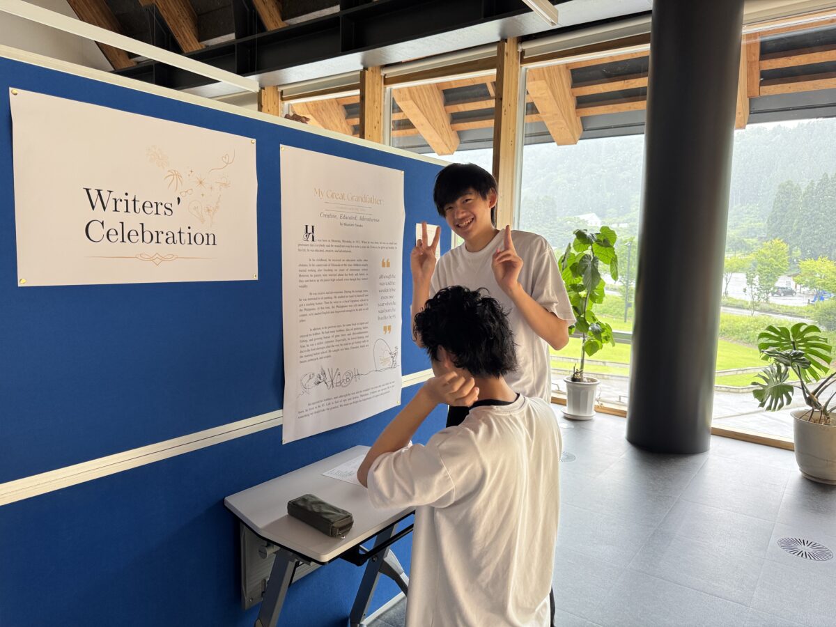 今学期、2年生のリーディング・ライティングの授業では、学生たちが「Profile Essay」を書くために、自分にとってインスピレーションを与えてくれる人物にインタビューを行いました。家族について書いた学生も多く、メモを取りながら文章を仕上げていきました。書く過程そのものも価値あるものでしたが、最後に行われた「Writer’s Celebration」で最も重要な気づきがありました。