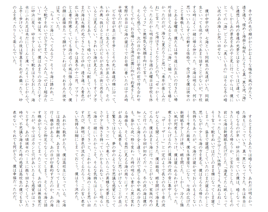 沙魚(筆名)さんは「お台場の海」。冬の夜の海を情感豊かに綴っています。