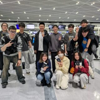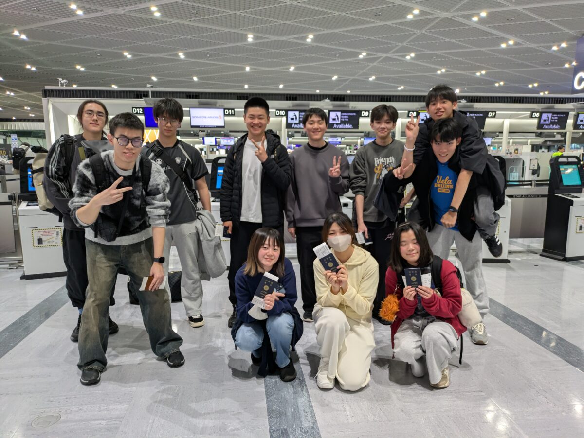 After completing check-in procedures at Narita Airport成田空港にて搭乗手続きを終えた学生たち
