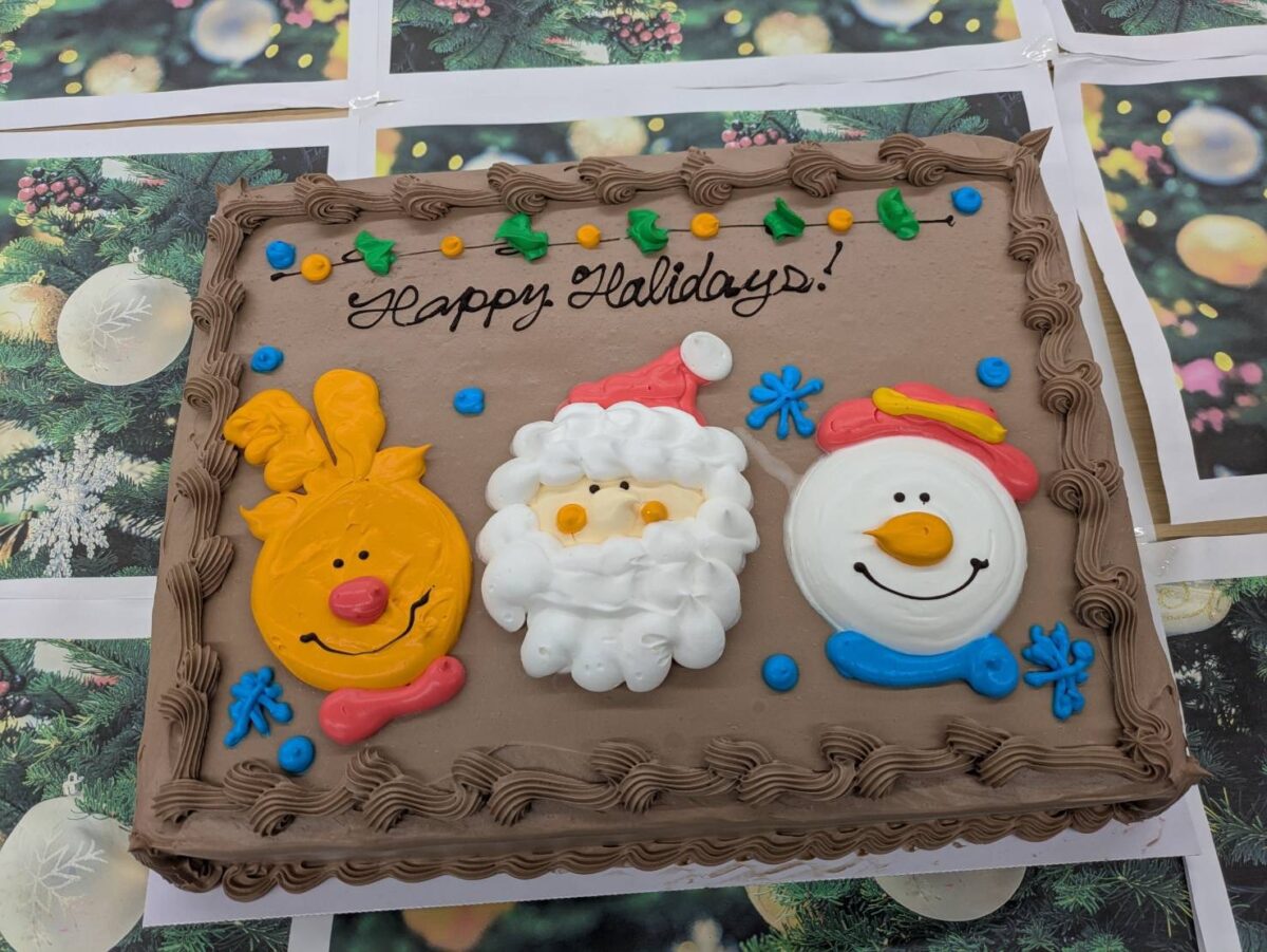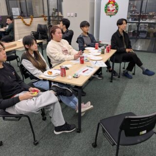 This year’s Holiday Party was held on Friday, December 19th, after classes ended with students and faculty enjoying a simple spread of pizza, potato chips, soda, and cake alongside holiday music playing in the background. As Christmas is one of the most celebrated holidays in many cultures, a Christmas tree, tinsel and other Christmas decorations adorned the room to create a festive atmosphere.