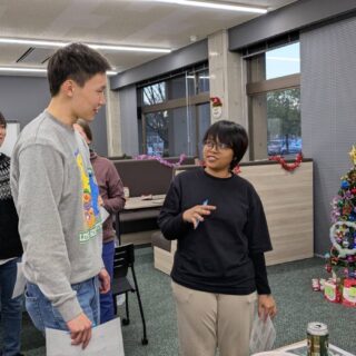 クリスマスパーティー当日までの準備期間も、すでにワクワクする時間でした。学生たちは数日かけて、色とりどりのライトやオーナメントでリビングコモンズを飾り付けました。中でもひときわ目立っていたのが、背の高いクリスマスツリーです。学生たちは、それぞれのシークレットサンタの相手に気づかれないよう、こっそりとプレゼントをツリーの下に置いていきました。さらに、手作りの「アドベントカレンダー」も用意し、12月の毎日に小さなサプライズを加えました。こうした準備が、特別な夜への期待を少しずつ高めていきました。