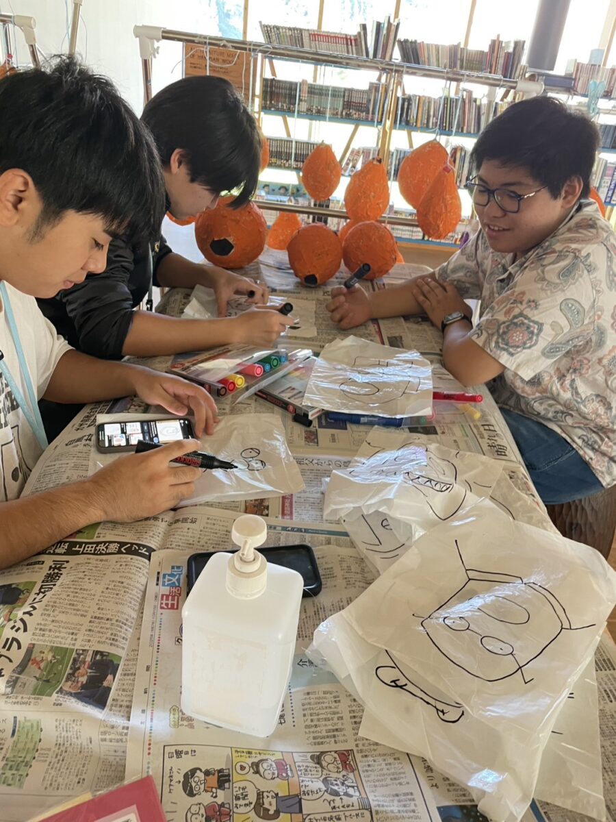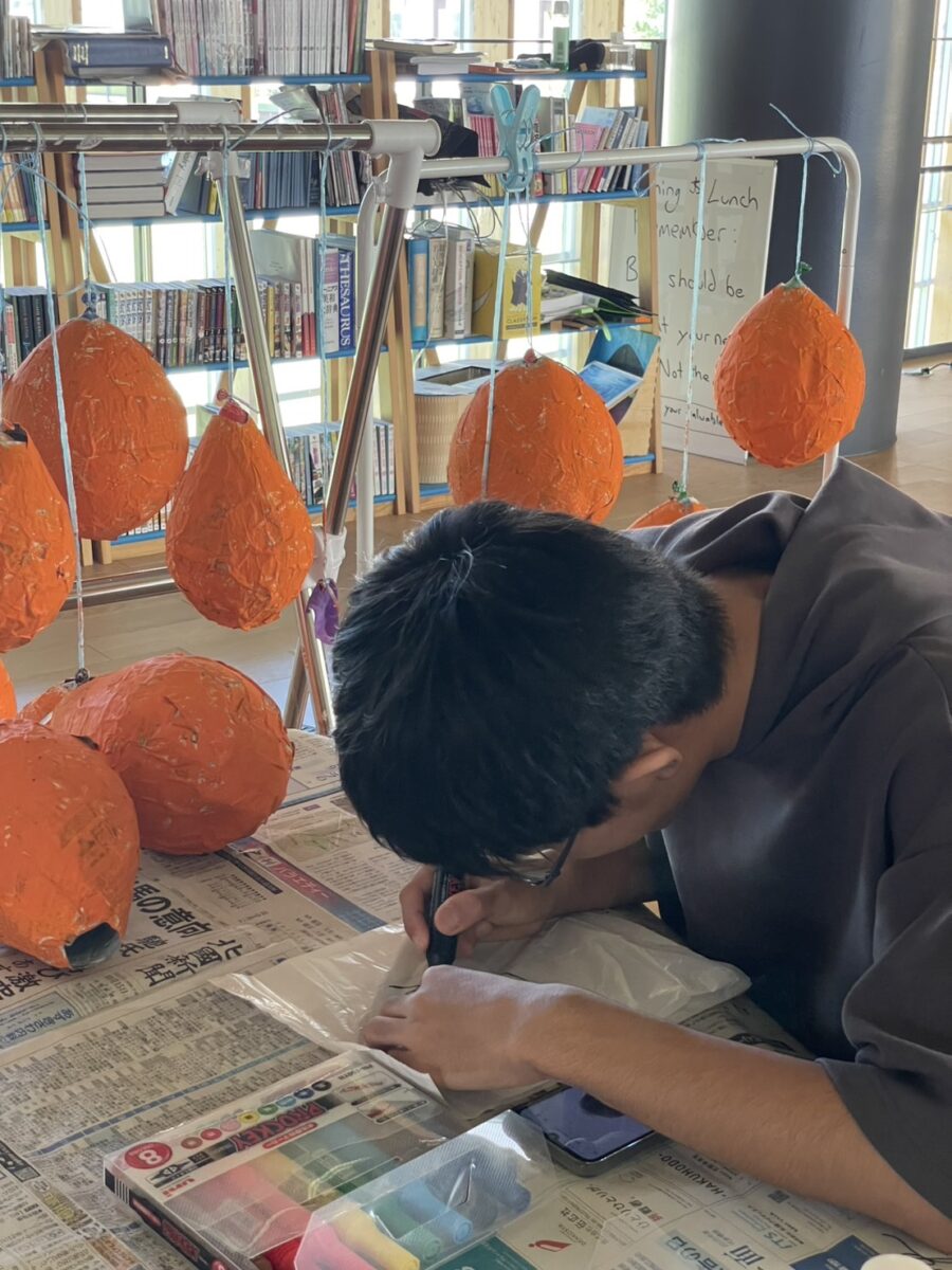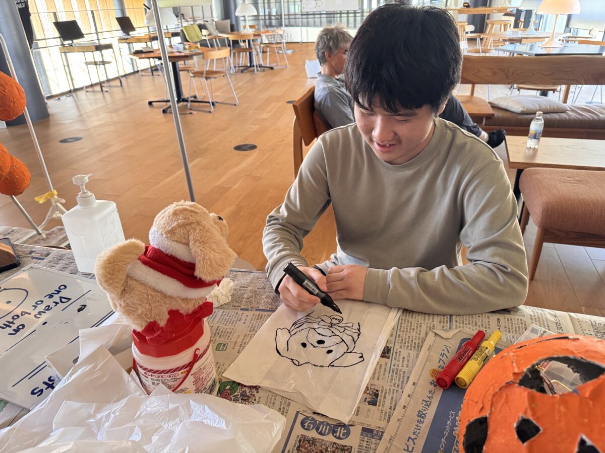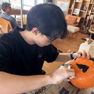 As the Halloween season approached, the Hakusanroku campus building was festively decorated by students and learning mentors. They created handmade Jack-o’-lanterns and added playful touches, such as illustrated plastic bags attached to air conditioner vents, brightening up the entire building.