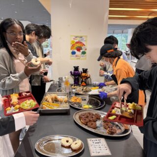 For lunch, a special Halloween menu was served such as Vampire’s Feast Pizza (stuffed with cheese and absolutely delicious!), creepy-colored pasta shaped like caterpillars PLUS about 10 varieties of candy available for everyone to enjoy. Students had a great time savoring these treats.