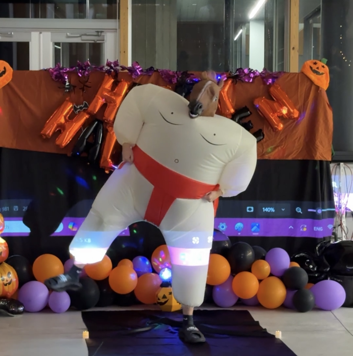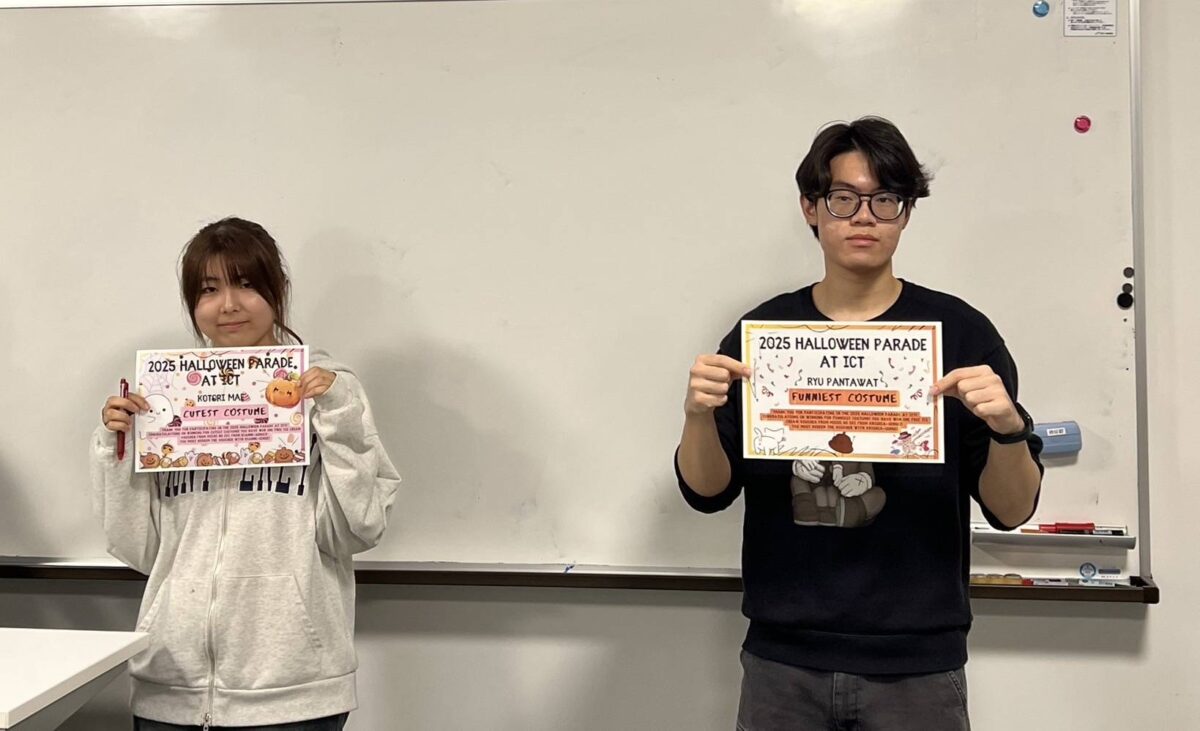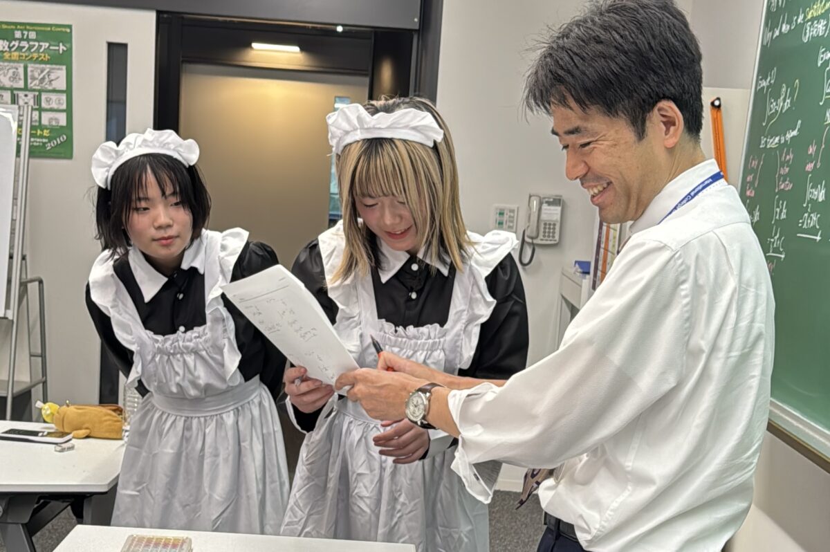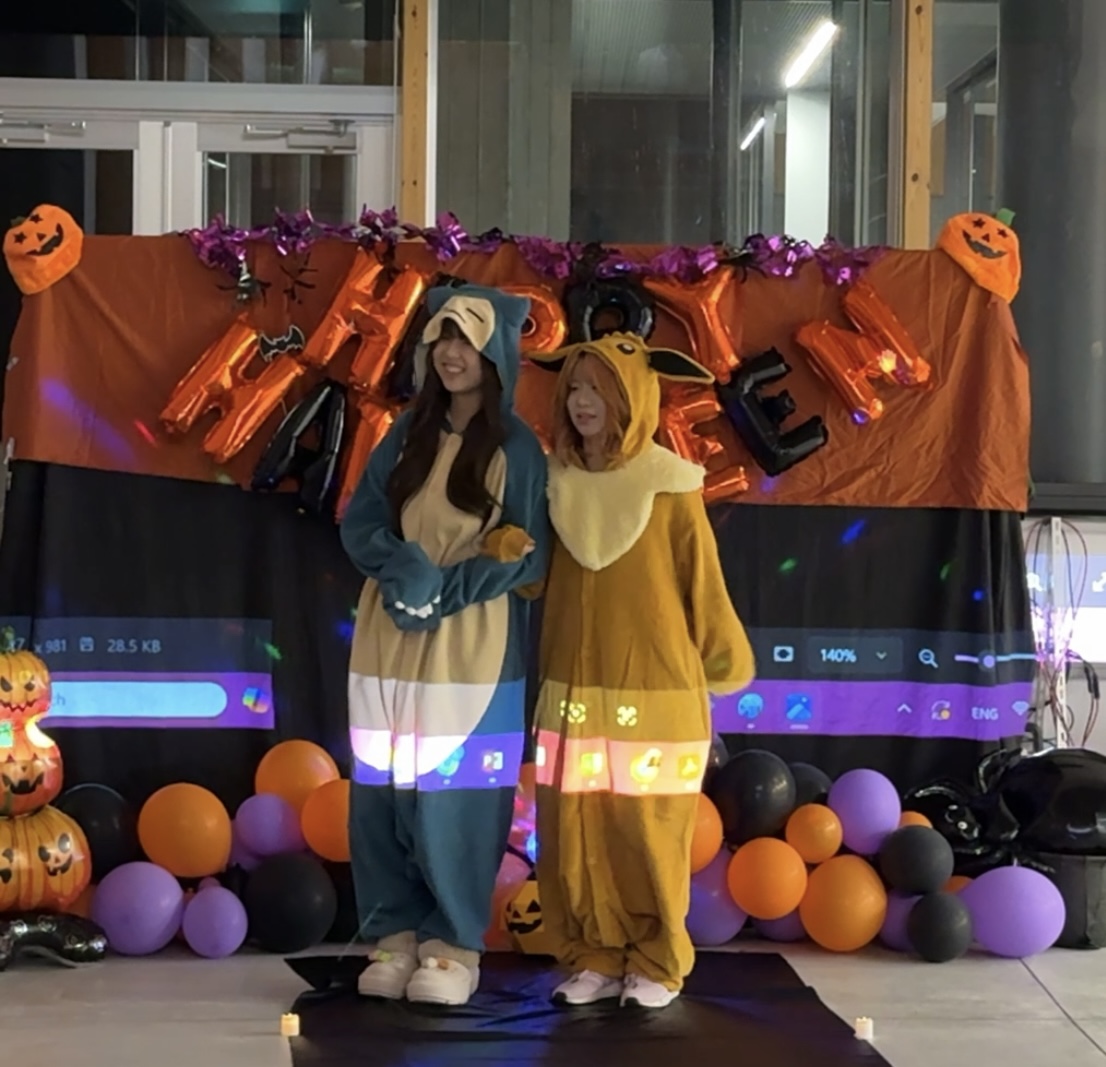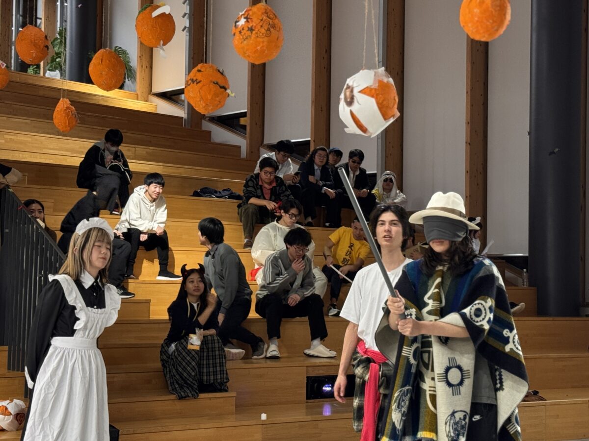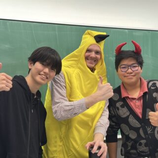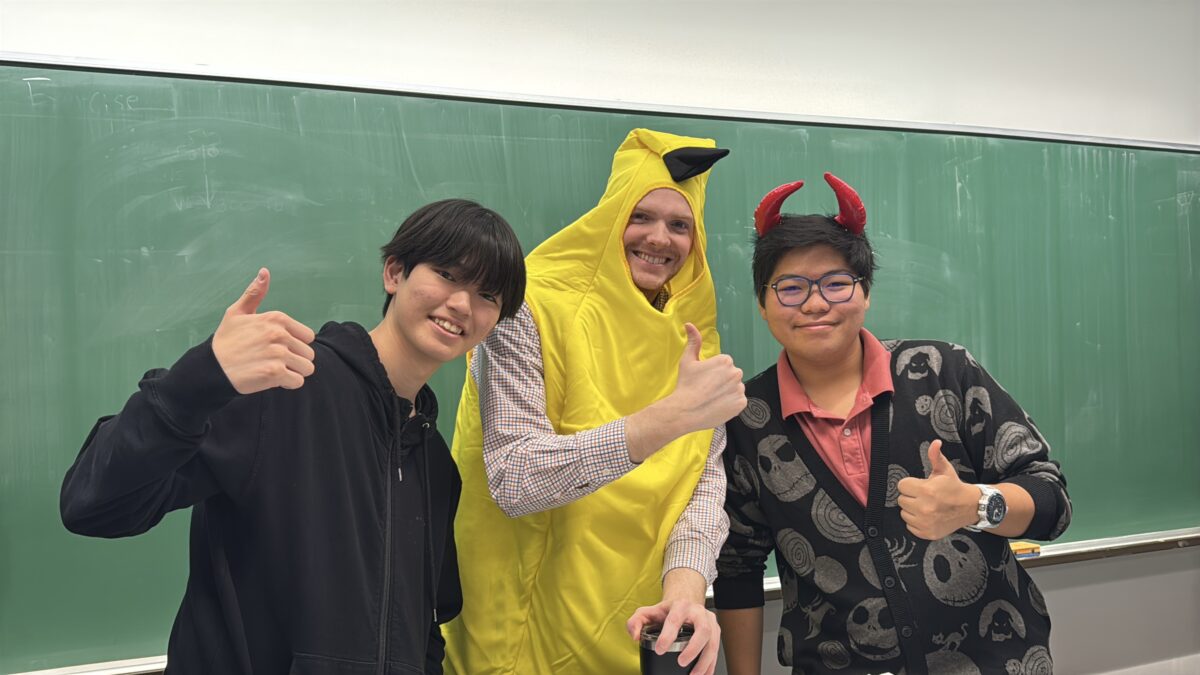 On Friday, October 31st, 2025, the day of Halloween, several students and faculty members attended classes in costume. Students dressed as Pokémon characters, maids, cowboys, and more, while teachers appeared in Japanese school uniforms or even banana costumes, creating a unique and lively atmosphere in the classroom.