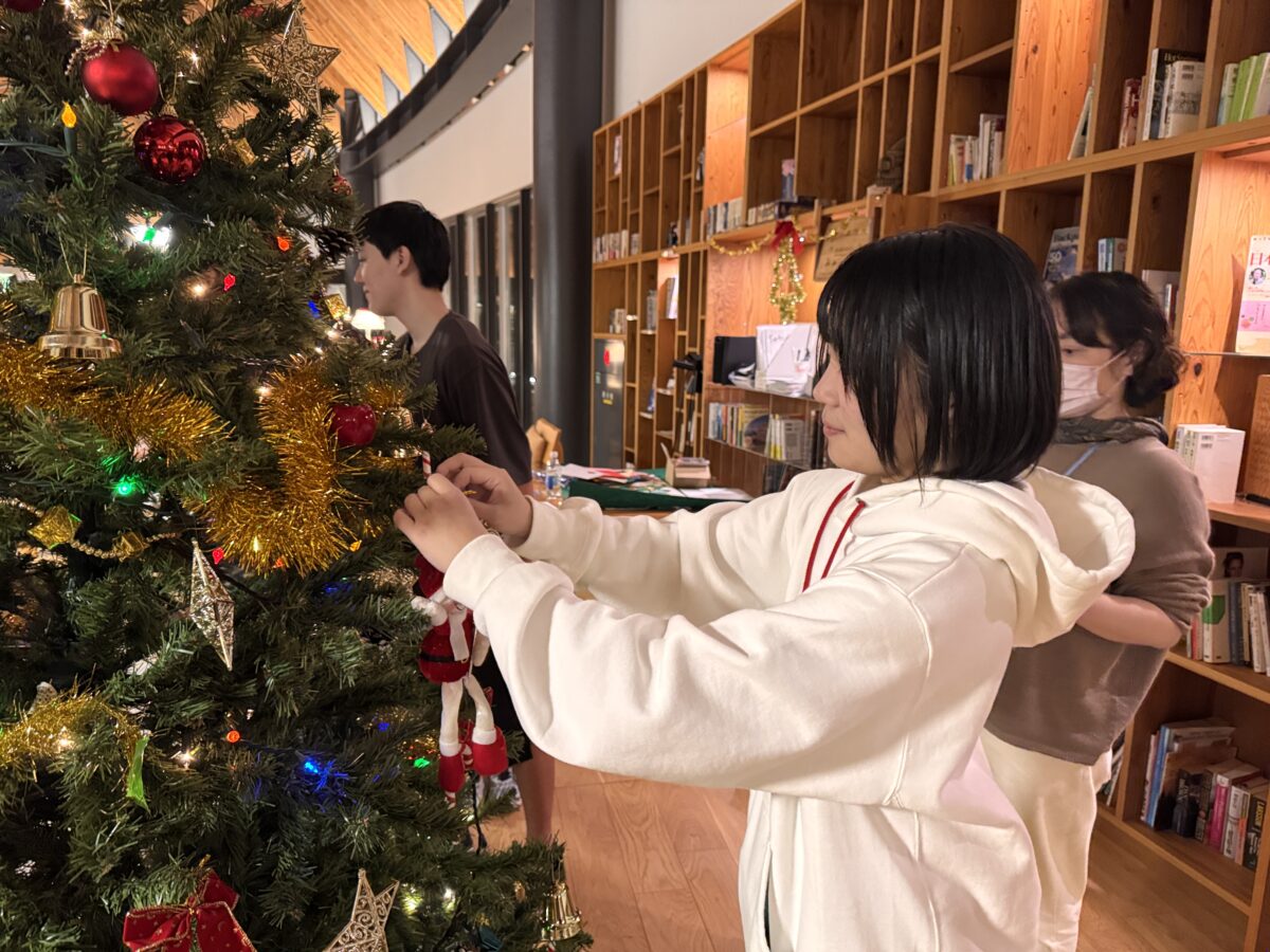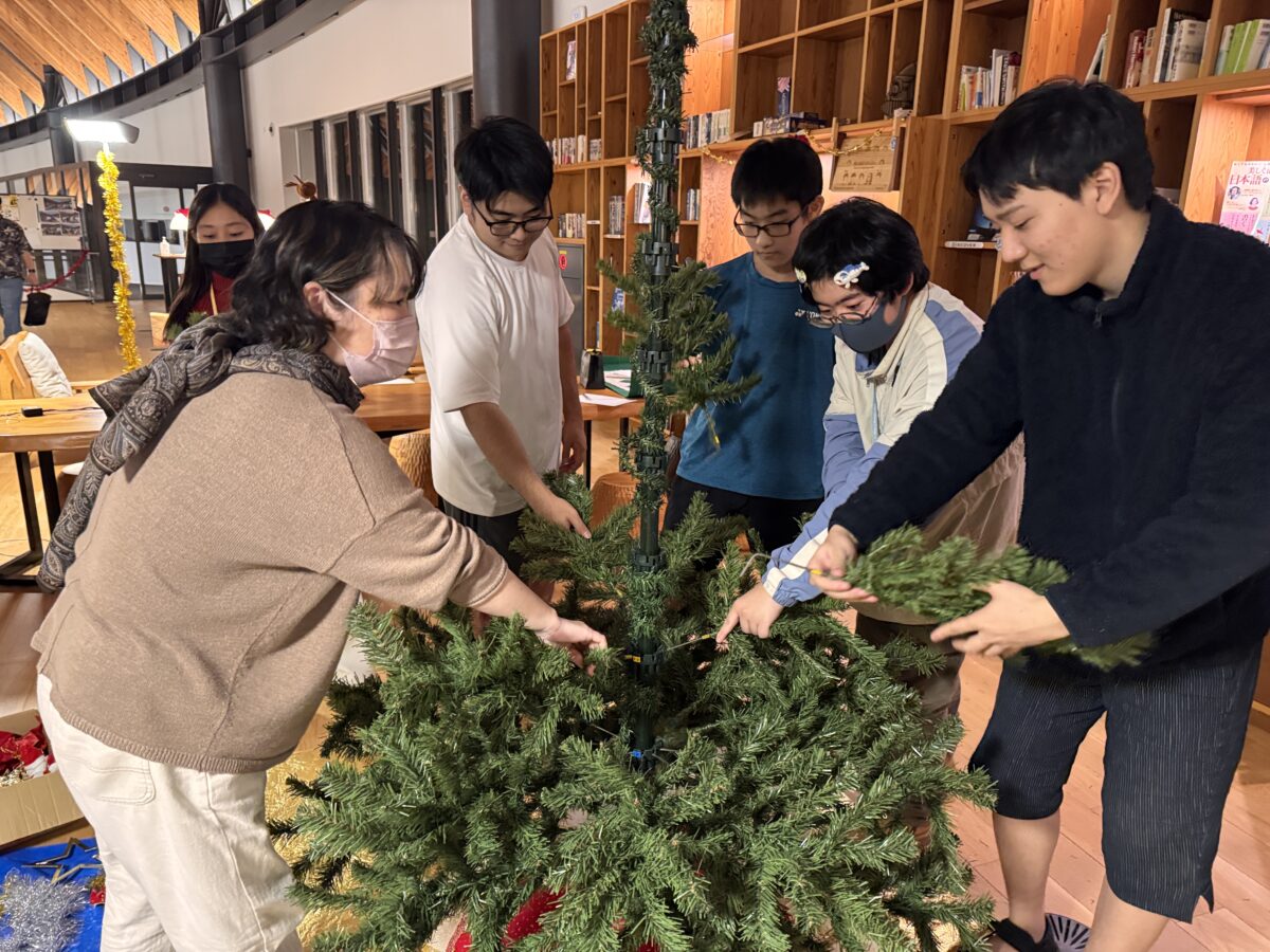 例年通り、まずはクリスマスツリーの飾り付けから始めました。高学年の小学生は低学年よりも少し遅く学校が終わるため、低学年の子どもたちは先にツリーの飾り付けを終わらせ、到着した高学年の友達に見せることができました。