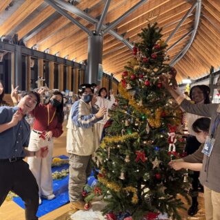 クリスマスパーティー当日までの準備期間も、すでにワクワクする時間でした。学生たちは数日かけて、色とりどりのライトやオーナメントでリビングコモンズを飾り付けました。中でもひときわ目立っていたのが、背の高いクリスマスツリーです。学生たちは、それぞれのシークレットサンタの相手に気づかれないよう、こっそりとプレゼントをツリーの下に置いていきました。さらに、手作りの「アドベントカレンダー」も用意し、12月の毎日に小さなサプライズを加えました。こうした準備が、特別な夜への期待を少しずつ高めていきました。