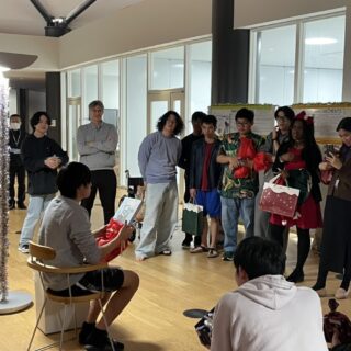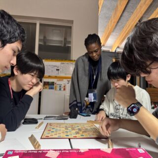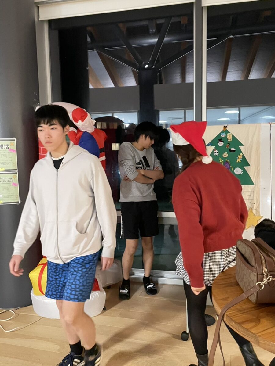 12月19日の放課後に開催されたクリスマスイベントは、英語科によるICT初の「クリスマス・スクラブル・トーナメント」から始まりました。1年生と2年生の学生が混成チームを組み、ものすごい速さで単語を作っていきました。中には、ボードゲームが初めてにもかかわらず、400点以上を獲得した学生もいました!優勝チームには賞品が贈られましたが、それ以上に、参加した全員が達成感いっぱいの笑顔で終えることができました。