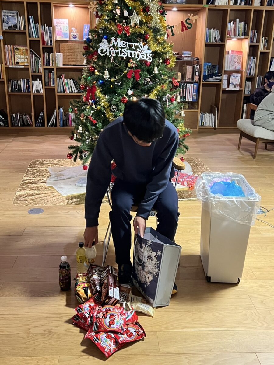 すべてのプレゼントが見つかると、再びツリーの周りに集まり、開封の時間となりました。中身を推理しながら開ける学生もいれば、待ちきれずすぐに包みを開ける学生もいました。プレゼントは実に多彩で、光るライトセーバーのおもちゃ、学生たちに大人気のトルティーヤ、ロボット制作に使える工具、小説やその他の書籍、かわいらしい部屋の装飾品など、誰もが笑顔になるものばかりでした。