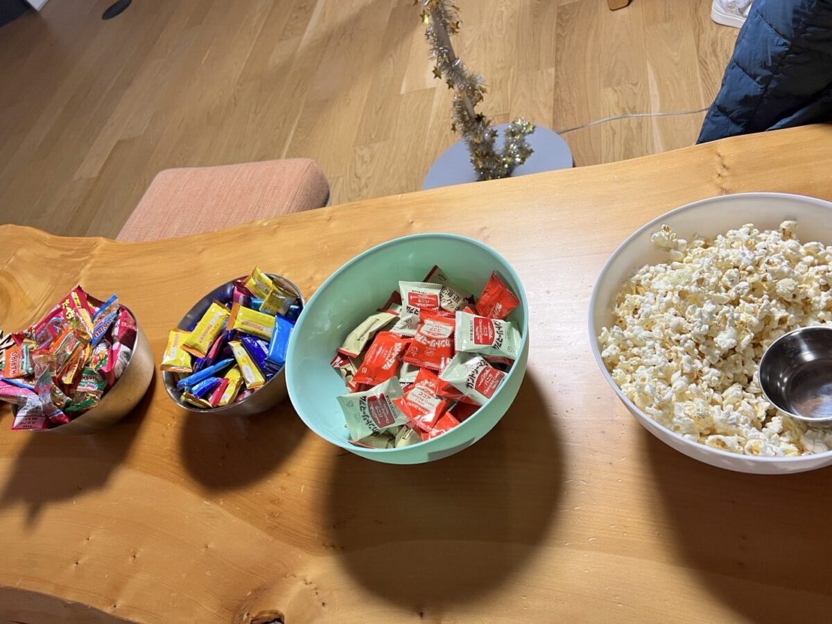 その後は、お菓子をつまみながらゲームをしたり、会話を楽しんだりと、ゆったりとした時間が流れました。ビデオゲームに興じる学生もいれば、チップスやクッキーを囲んで談笑する学生もいました。過ごし方はそれぞれでしたが、パーティーがお開きになる頃には、全員が心もお腹も満たされて幸せな気持ちになりました。