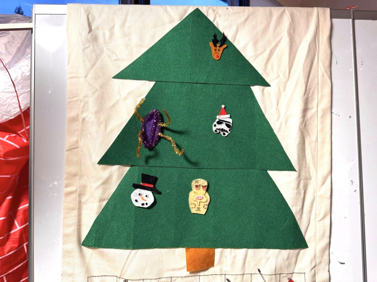 But the fun didn’t start there. In the days before the party, students helped decorate the Living Commons with colorful lights and ornaments. The biggest star was our tall Christmas tree, where students secretly placed their gifts, , trying not to get caught by their Secret Santa matches. We also made a handmade Advent calendar, adding a small surprise to each day in December. It was a slow build-up to something truly special.