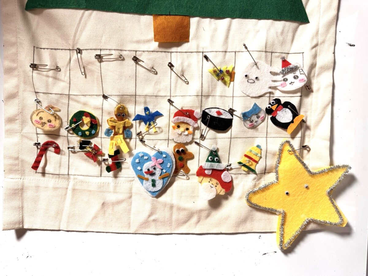 尾口コミュニティセンターのスタッフさんたちが、イベントのために特別に用意してくださったのは、手作りできるアドベントカレンダーでした。カレンダーの扉に自分の好きなお菓子を入れられるので、子供たちは楽しそうに「どれにしようかな」と悩んでいました。