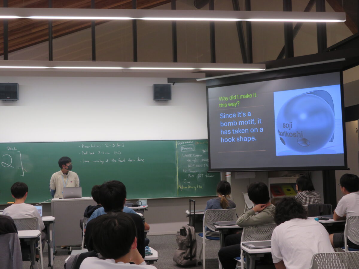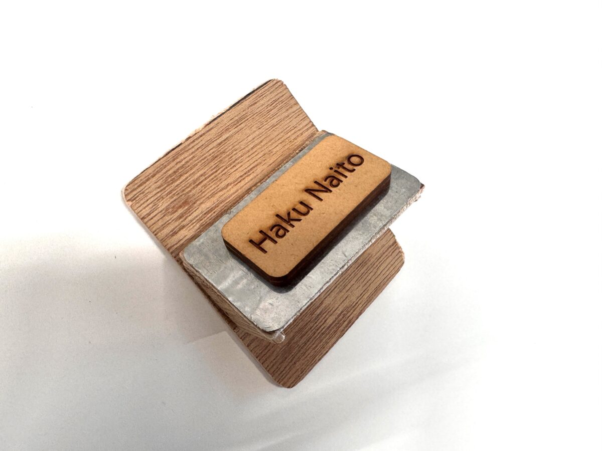 このプロジェクトにはいくつかの条件がありました。ネームタグは着用可能であること、指定されたサイズ内に収まること、白山麓キャンパスにある3Dプリンターやレーザーカッターを使用して制作すること、そして制作者本人の特徴を視覚的に表現することが求められました。