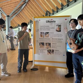 このグループは、白山麓キャンパスのリビングコモンズにあるウクレレのための新しいスタンドの設計に挑戦しました。楽器の安定性を高めるとともに、空間の美観を向上させることを目指しました。