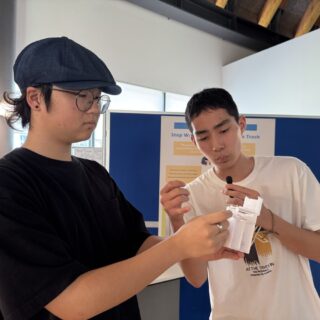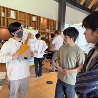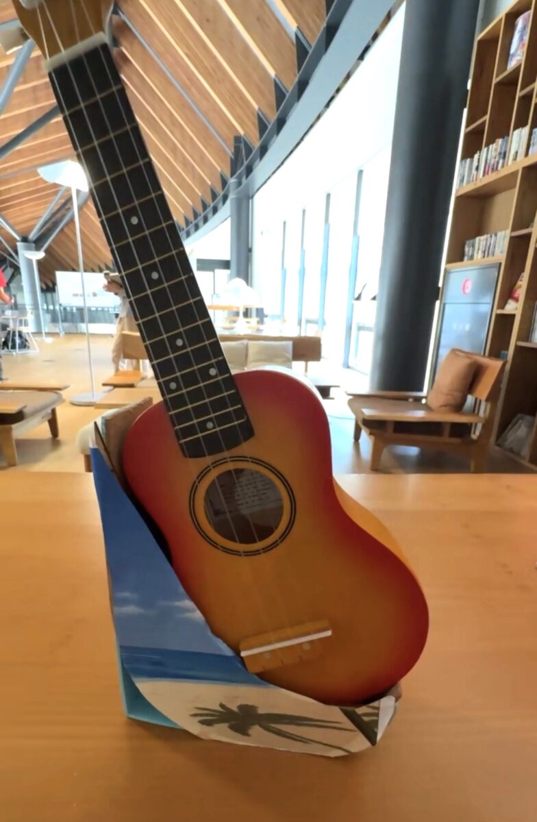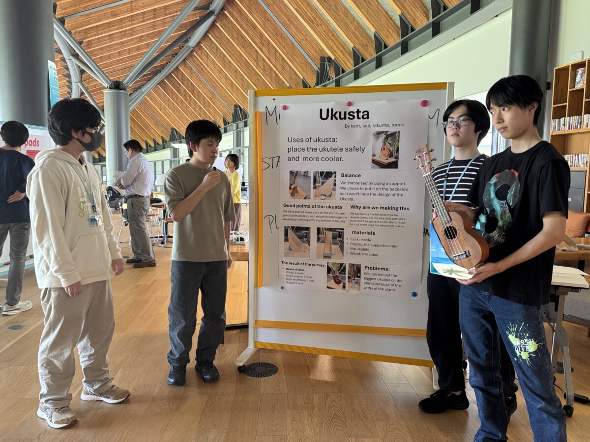 This group decided to take on the challenge of designing a new stand for the ukuleles found in the Living Commons at the Hakusanroku Campus. They wanted to make something that would stabilize the instrument while also helping to improve the visual aesthetics of the space.