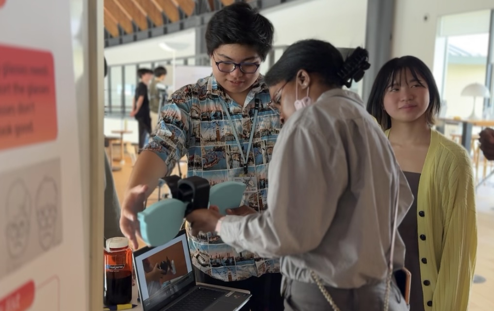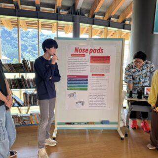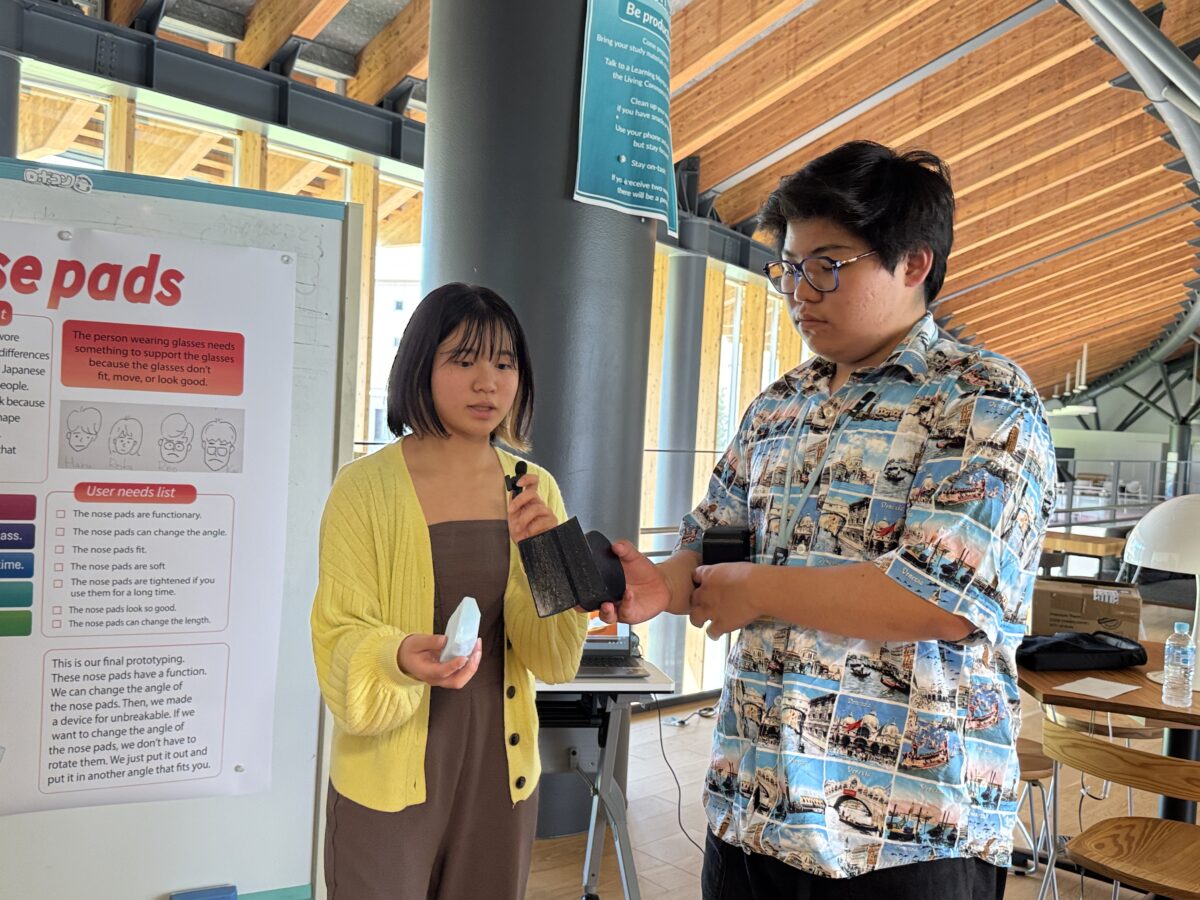 このグループは、さまざまな眼鏡やサングラスに対応できる調整可能なノーズパッドの開発に取り組みました。鼻の形状に合わせてフィットするよう設計されており、試作品はサイズの関係上、拡大モデルでの提示となりました。