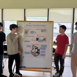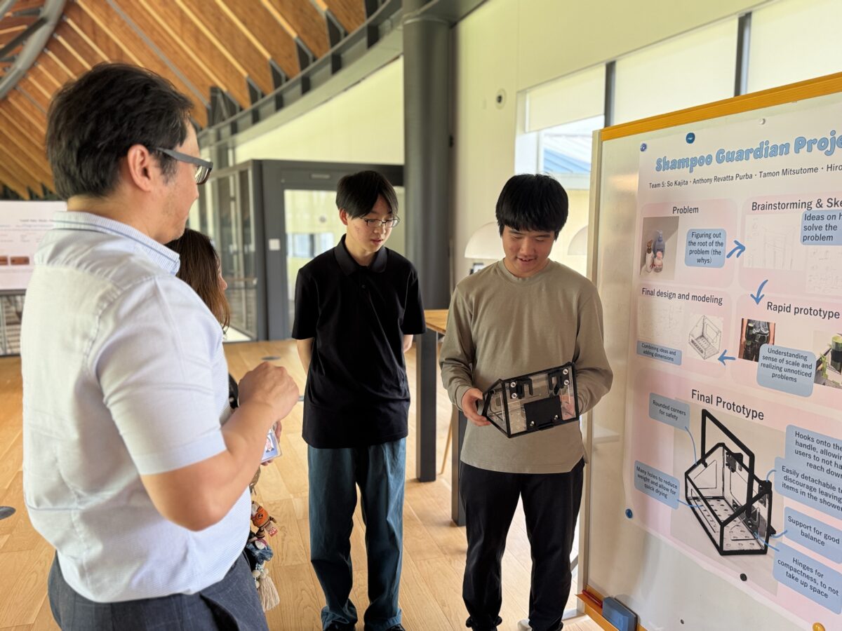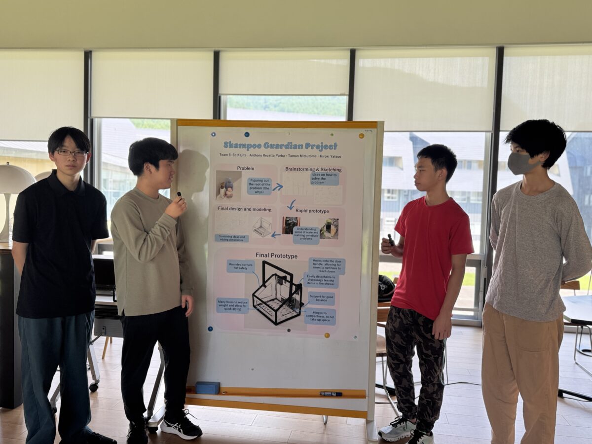 このグループは、寮のシャワー室における収納スペースの不足に着目しました。シャワー中に使用するボトル類を簡単に持ち運び、アクセスできる収納ツールの開発に取り組みました。